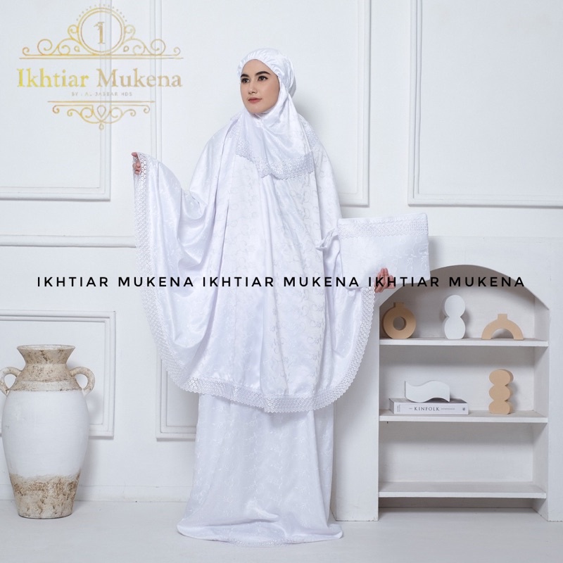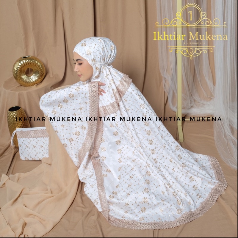 Mukena Dewasa Sutra Milo Prada Fulll Bordir Motif Renda Kalung