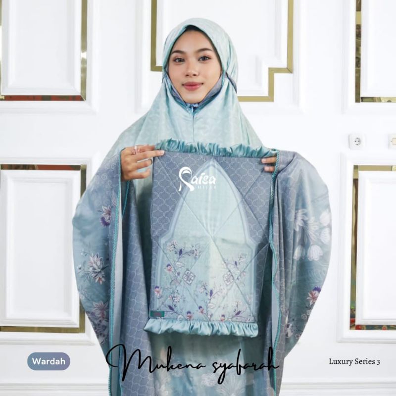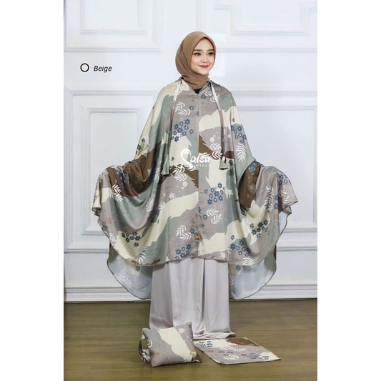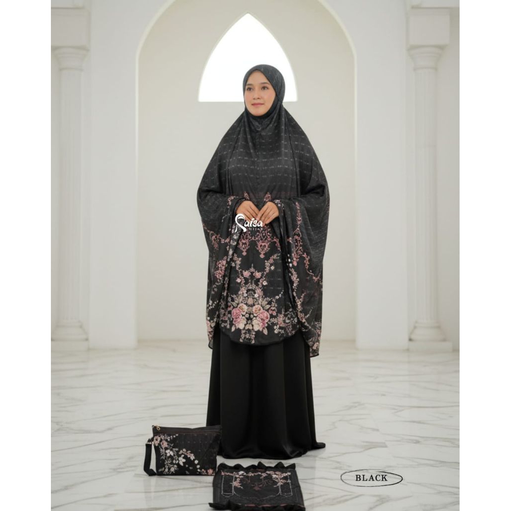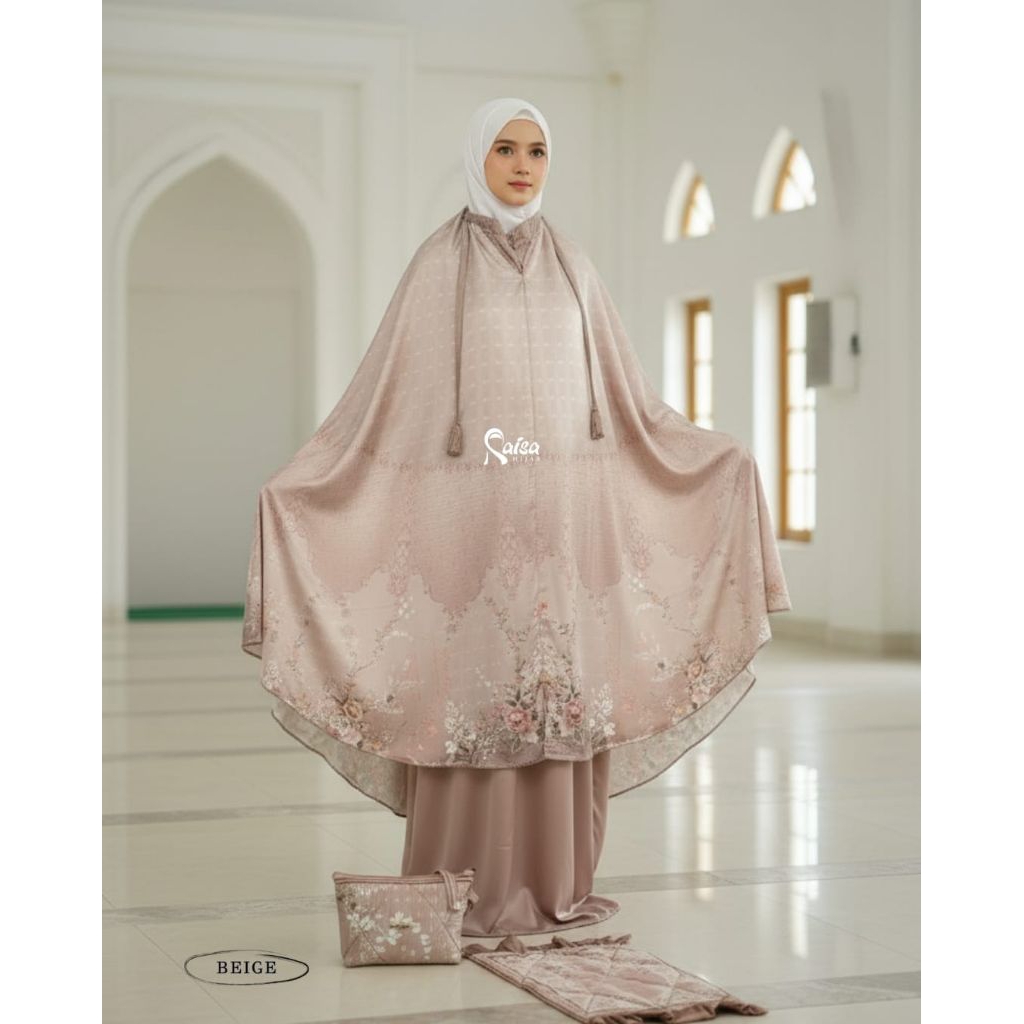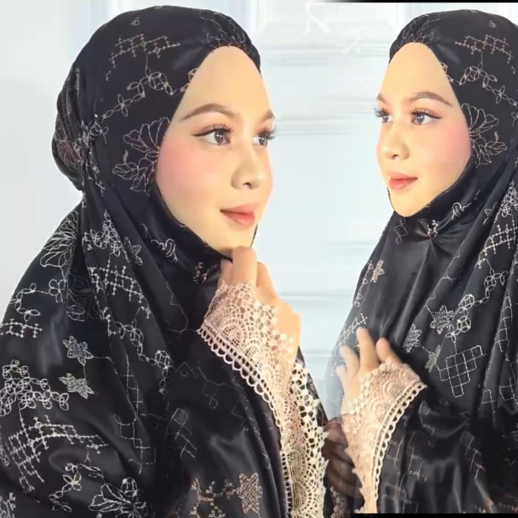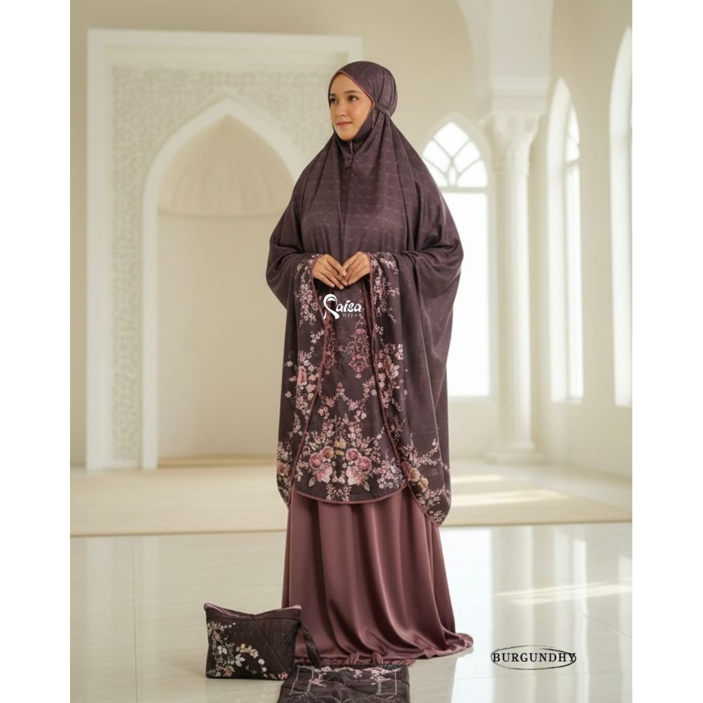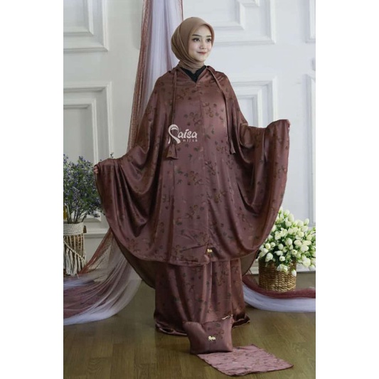 Mukena Satin Silk Premium Jumbo Mewah Motif Bunga Cantik Terbaru 2024 Resleting Dagu 2 in 1 Free Tas cantik Dan Sajadah Premium Original Raisa