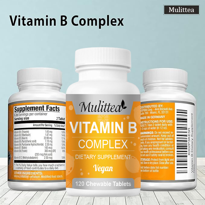 Mulittea Vitamin B Complex Chewable Tablets Relieves stress, boosts energy, improves immune system, supports better mood, nervous system health and energy, multivitamin supplement 120pcs Vitamin B Kompleks Tablet Kunyah