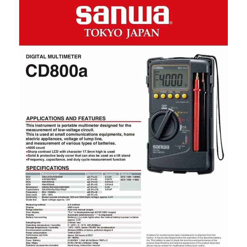 Multimeter Avometer digital Multitester + kabel tester Sanwa CD800A