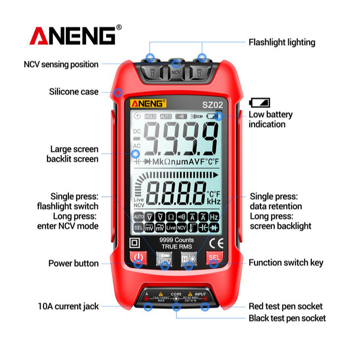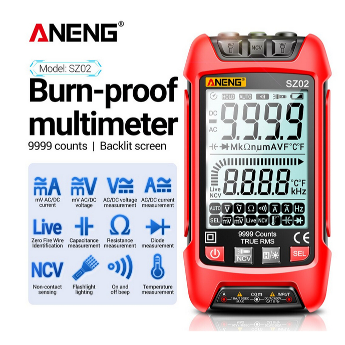 Multimeter Digital SZ02 Multitester Voltage Tester Multi Meter LED Burn Proof