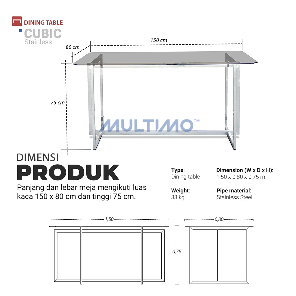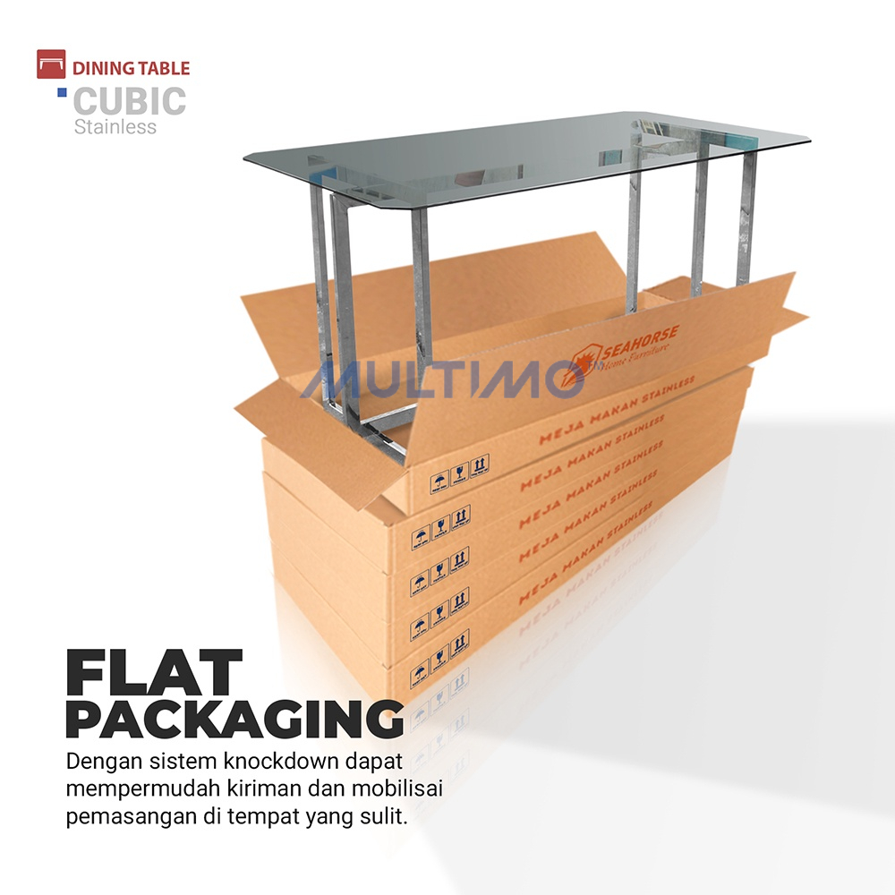 Meja Makan Dining Table Meja Kerja Meja Kaca - Seahorse CUBIC 150x80 Stainless Minimalis