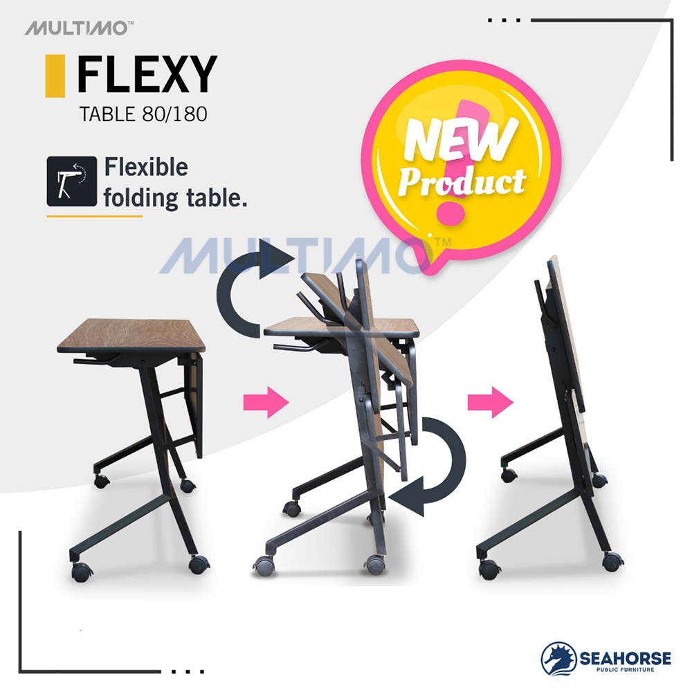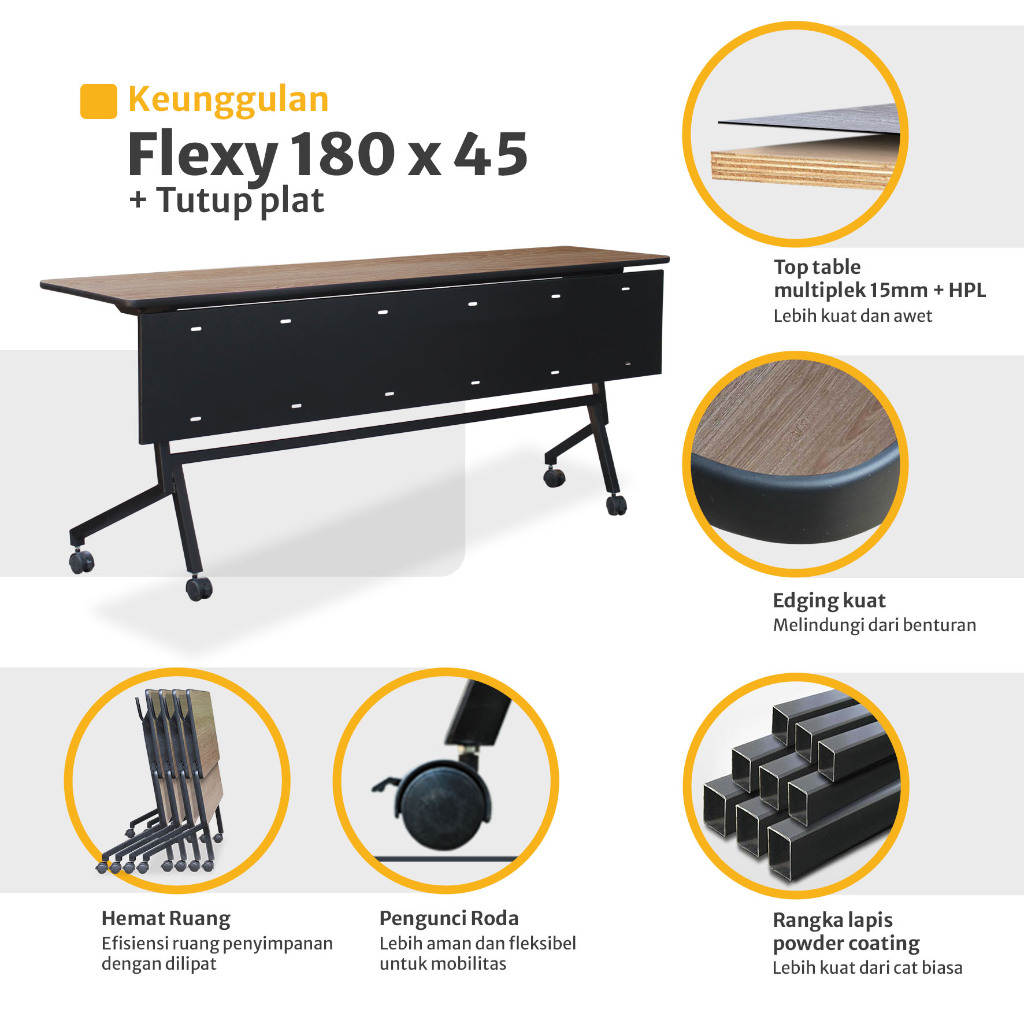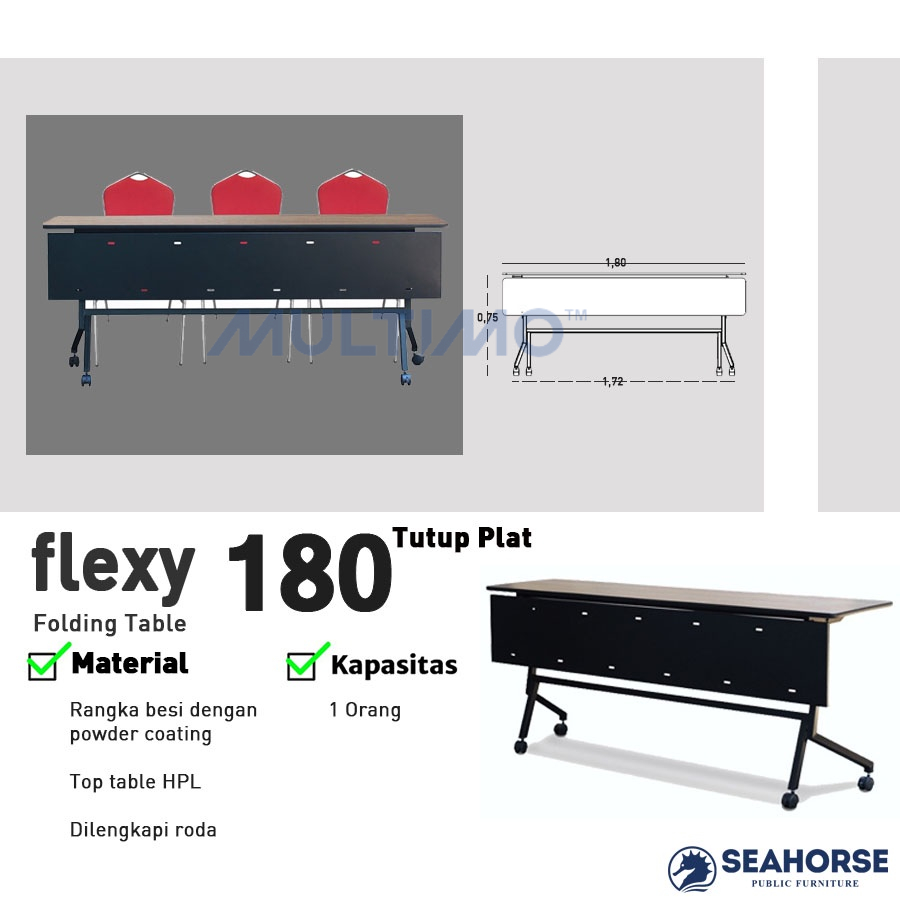 Meja Training Meja Banquet Meja Lipat Meja IBM Roda - Seahorse FLEXY 180x45 Multiplek Tutup Plat