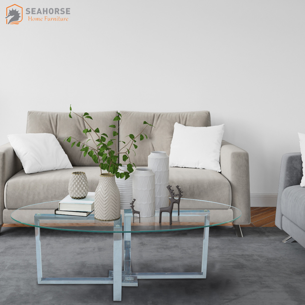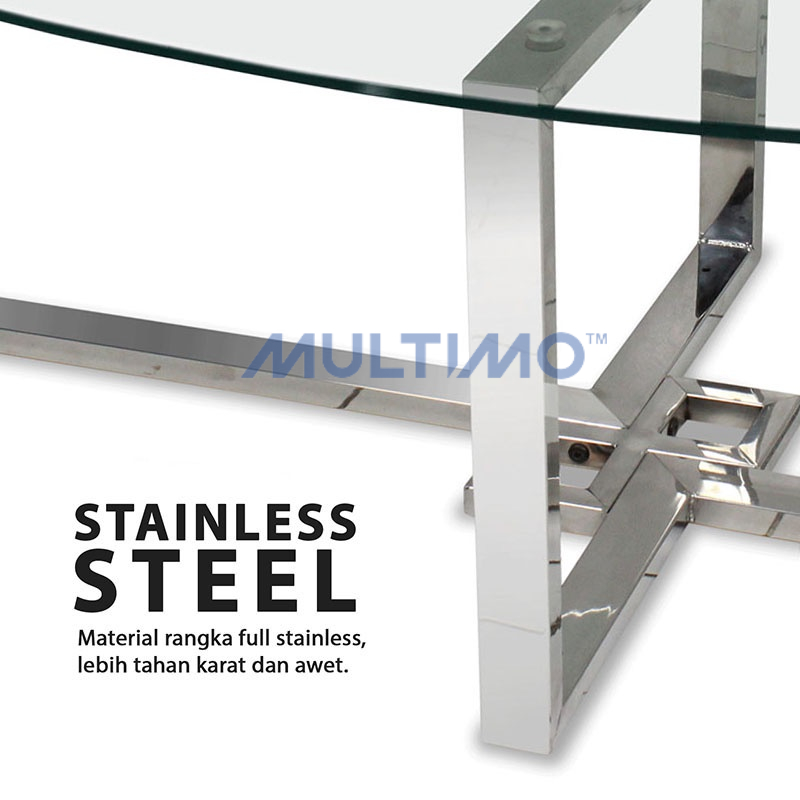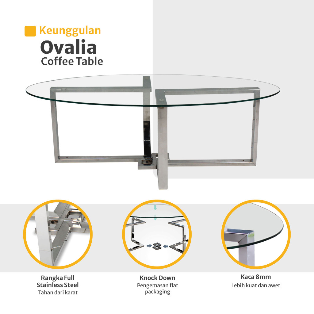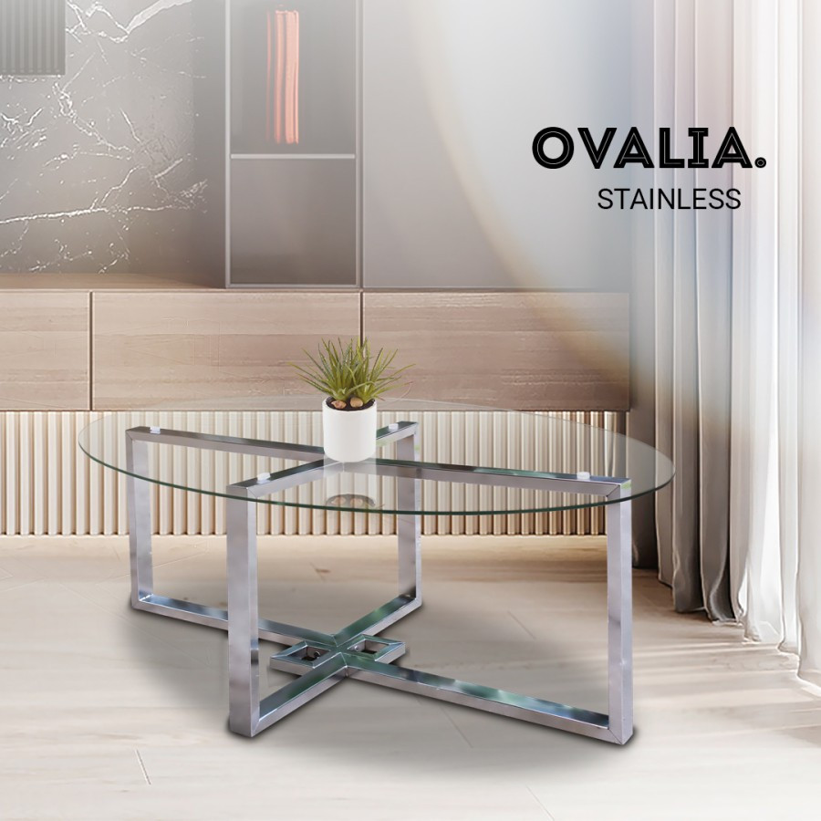 Meja Tamu Coffee Table Meja Kopi Meja Kaca Meja Oval - Seahorse OVALIA 120x60 T45 Stainless Minimalis Knockdown