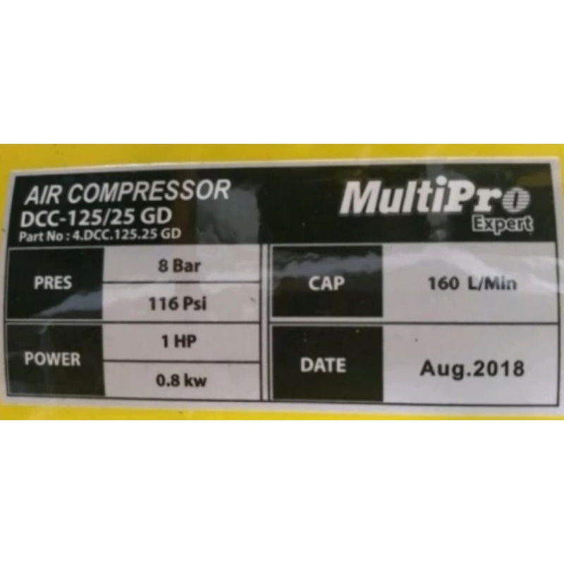 Multipro DCC-125 - 25 GD Air Compressor 1 Hp, Kompressor Heavy Duty