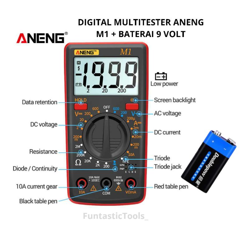 Multitester Digital Aneng M1 Ac Dc Tester Merah