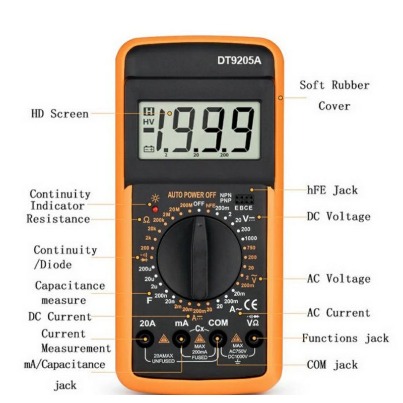 Multitester Multimeter Avometer LCD Digital DT-9205A DT9205A Pocket Size