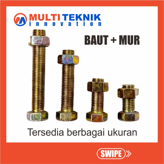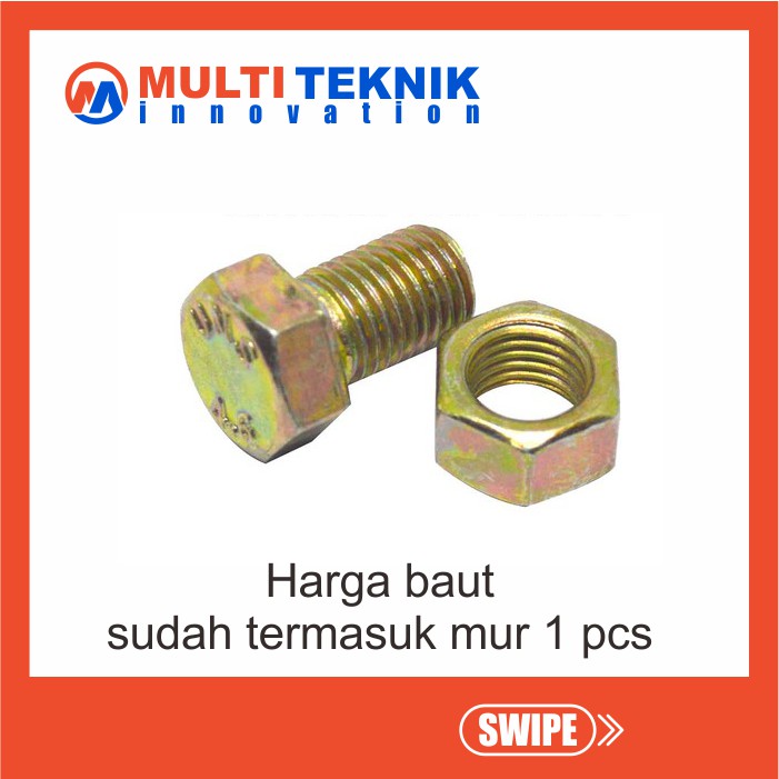 Mur Baut Ukuran 14 Sekrup Skrup M10 Kunci 14 10MM BAUT+MUR+RING Kuning Probolt MT234