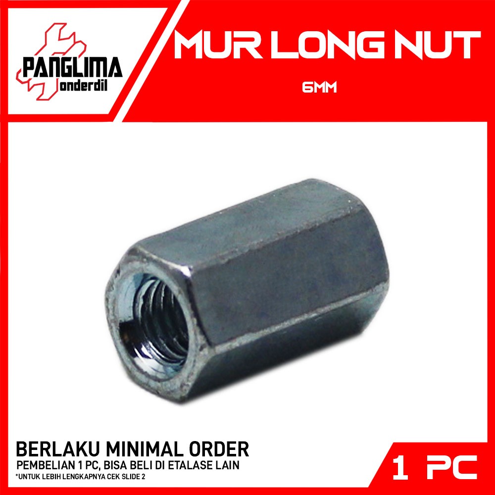 Mur Long Nut M6x18- M6 Panjang 18 mm Untuk Segala Jenis Keperluan Mur Panjang-Hexagon-Heksagon