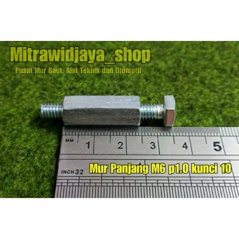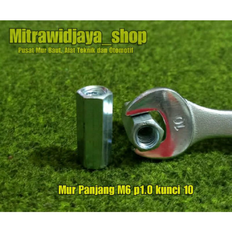 Mur panjang kunci 10an M6 p 1.0 long nut panjang drat halus sambungan baut miniatur mur baut panjang 6mm M6 kunci 10mm 10an