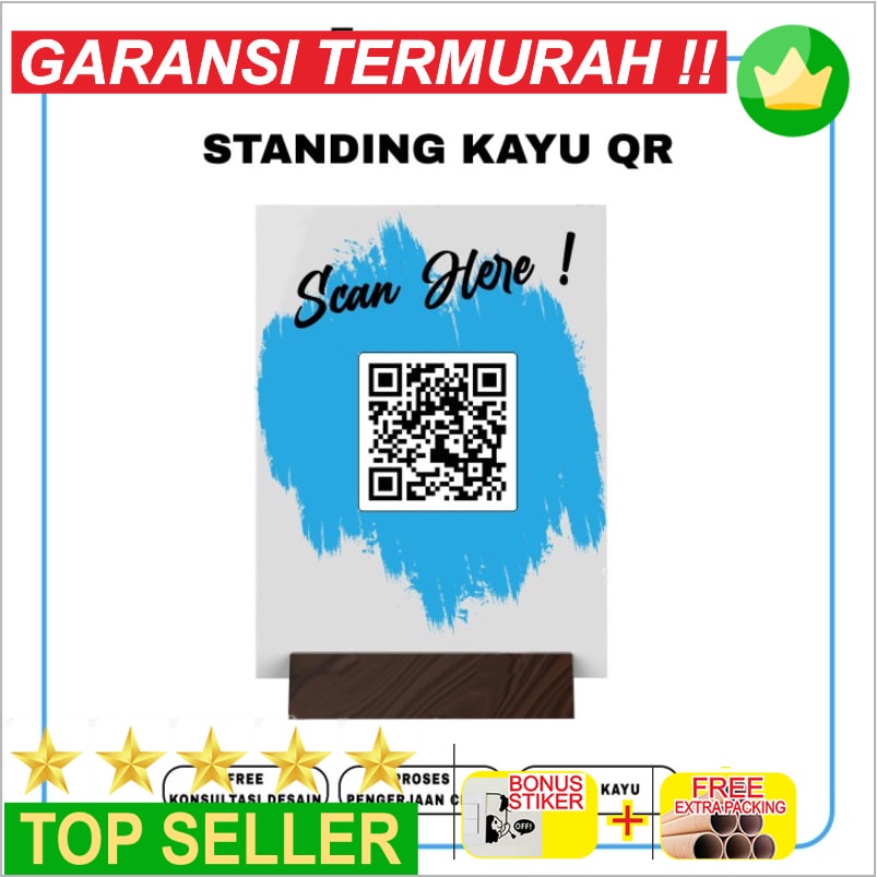 Murah QR STAND / STANDING KAYU QR CODE MEJA KAFE / RESTO / KASIR AKRILIK Keren