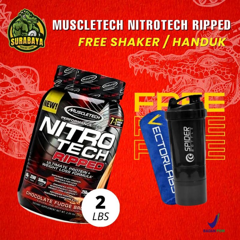 Muscletech Nitrotech ripped 2 Lbs BPOM Nitro Tech Susu Whey Protein Plus Fat Burner Pembakar Lemak