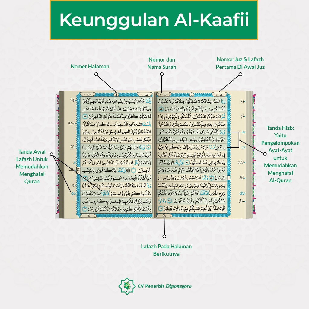 Mushaf Al-Quran Tahfidz Al-Kaafii | Al - Qur'an Hafalan Non Terjemah | Al - Qur'an 15 Baris | Al - Qur'an Resleting - Penerbit Diponegoro