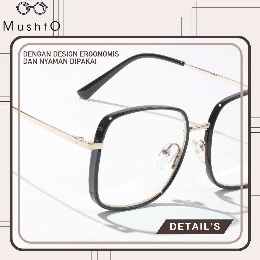 Mushto Kacamata Antiradiasi Blueray Model Kotak Stylish TR90+Metal Oversize Stylish Frame Pria Wanita Bisa Minus Photocromic 7700