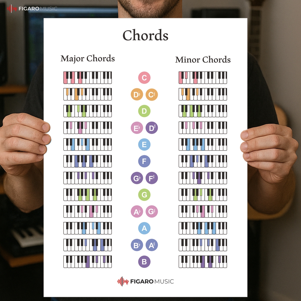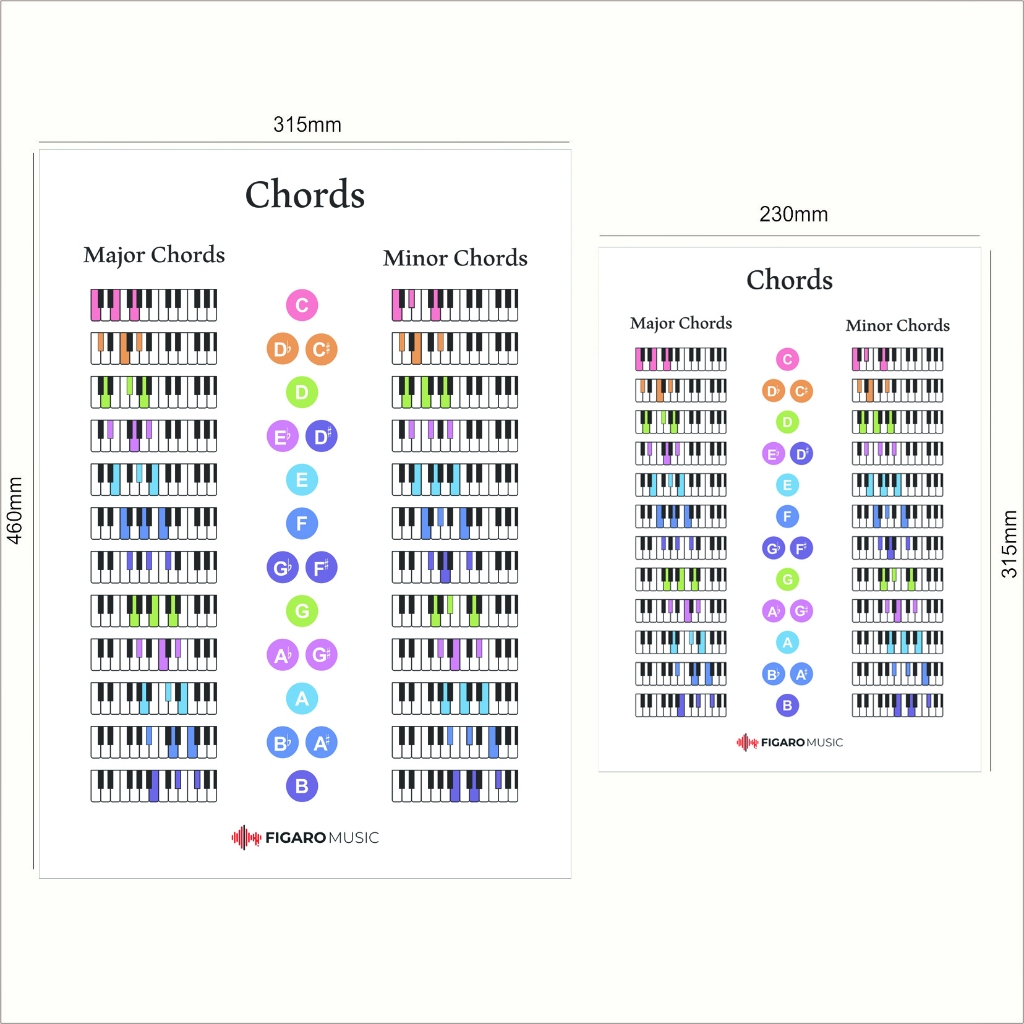 Music Theory Poster Set of 6, Dynamics, Chord Formulas, Chord, Circle of 5ths, Keys to sight reading, Scales