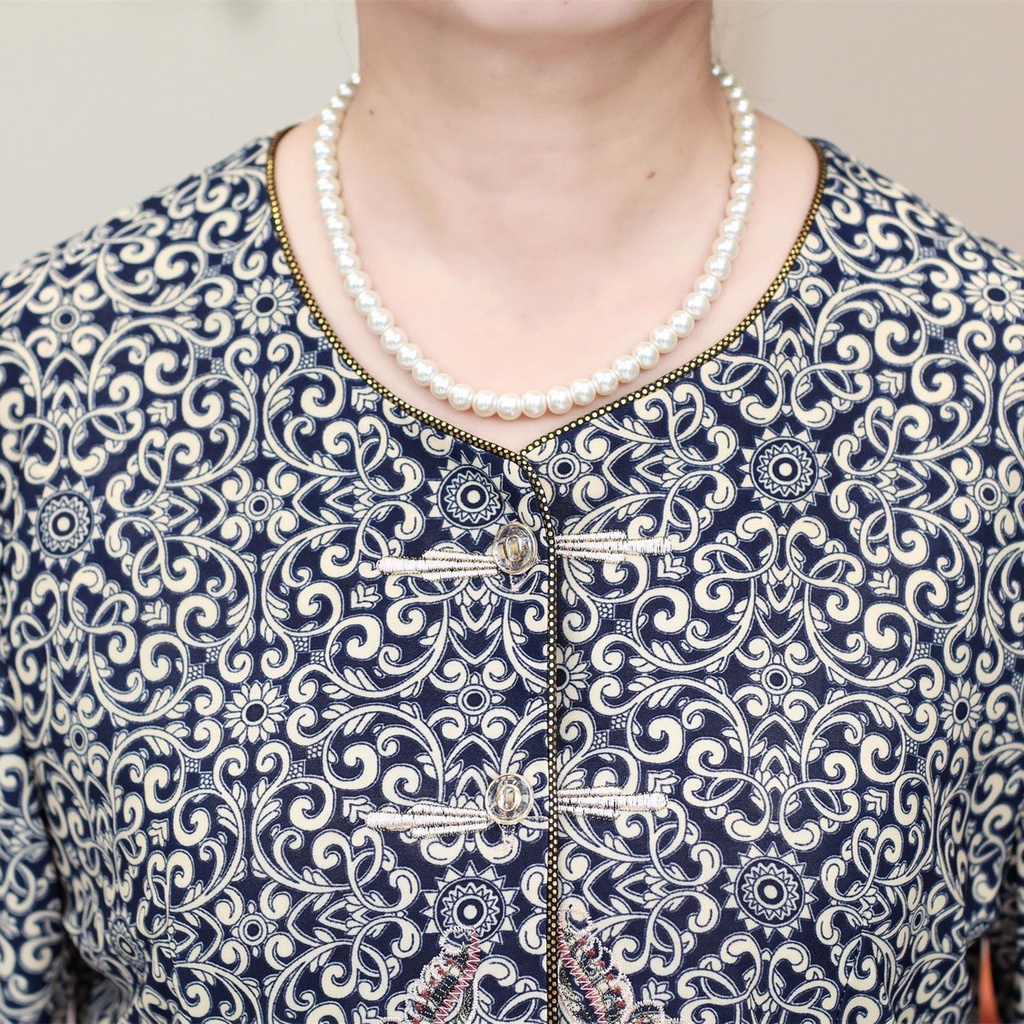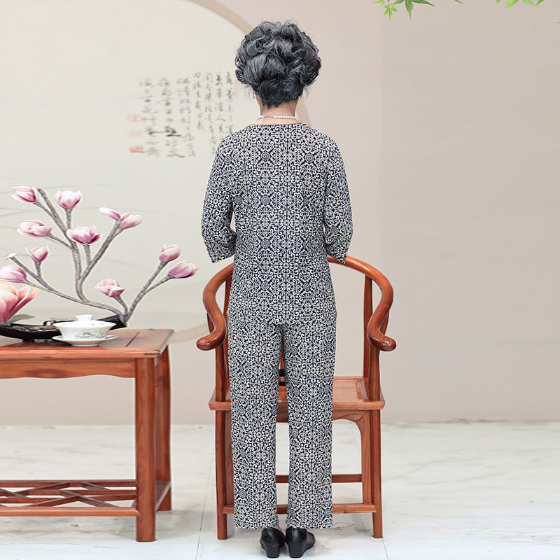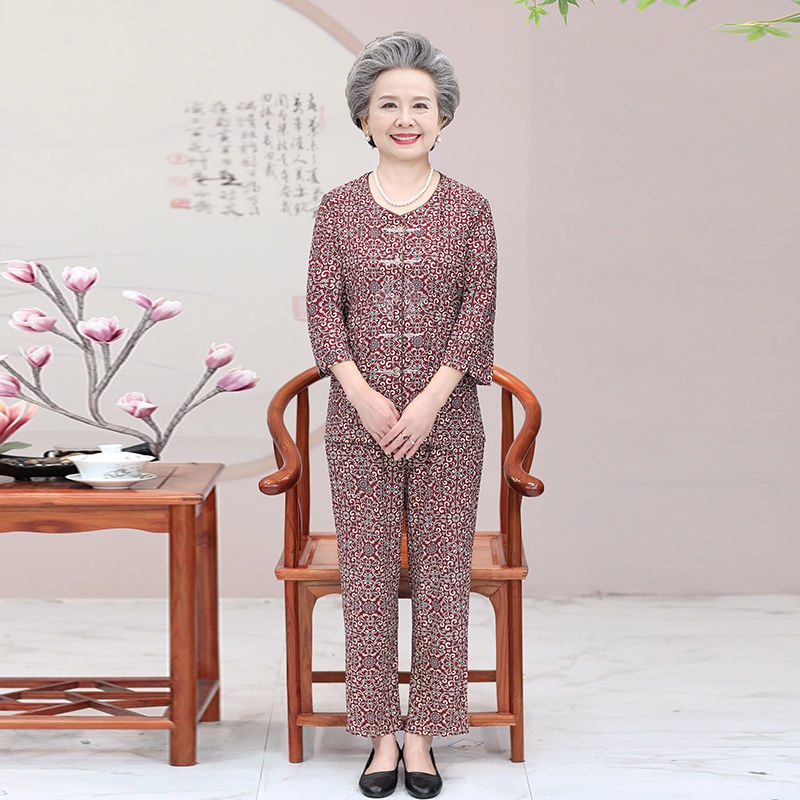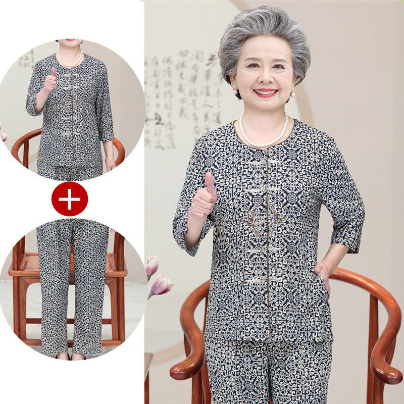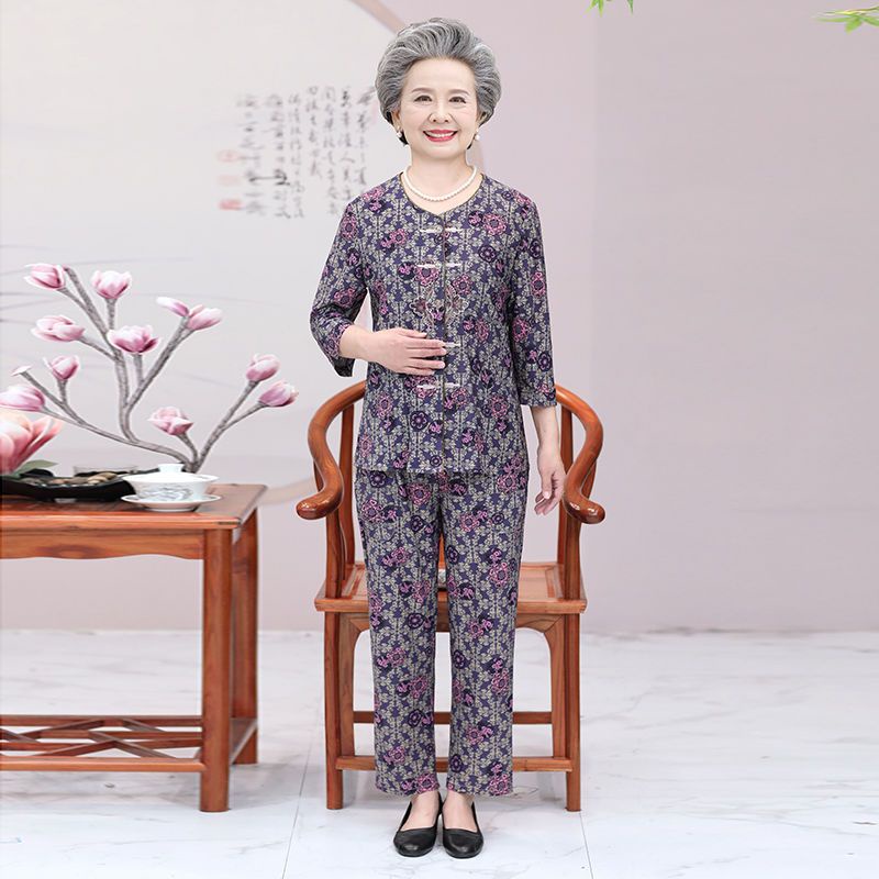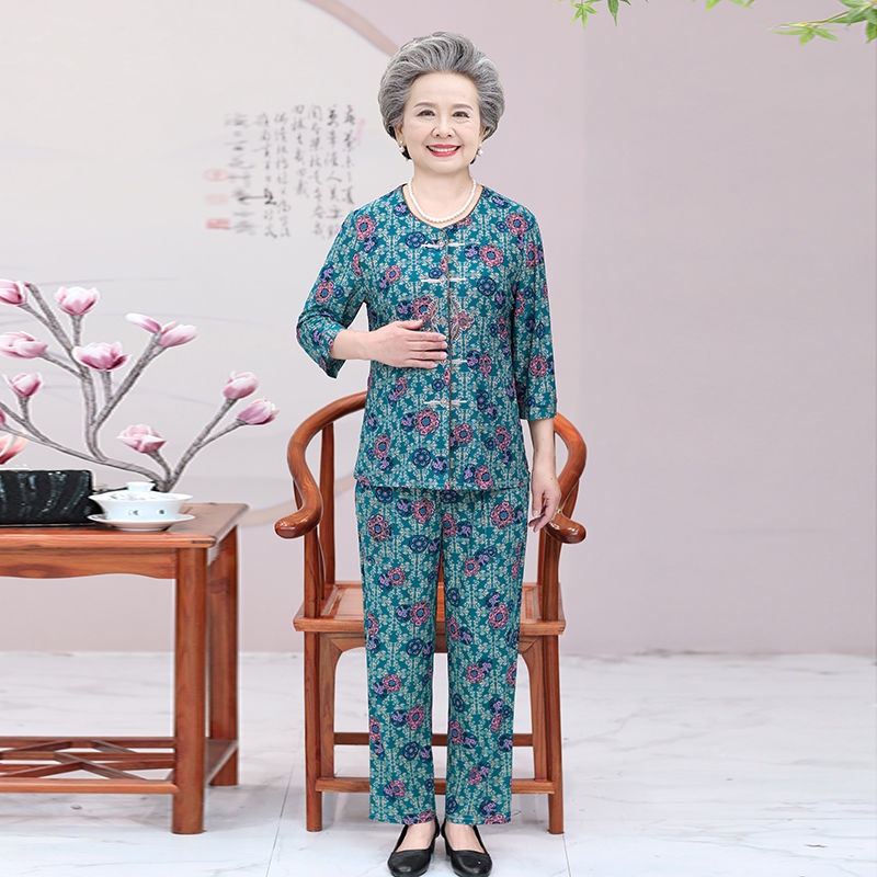 Gaun Atasan Lengan Tiga Perempat Gaun Bunga Wanita Tua