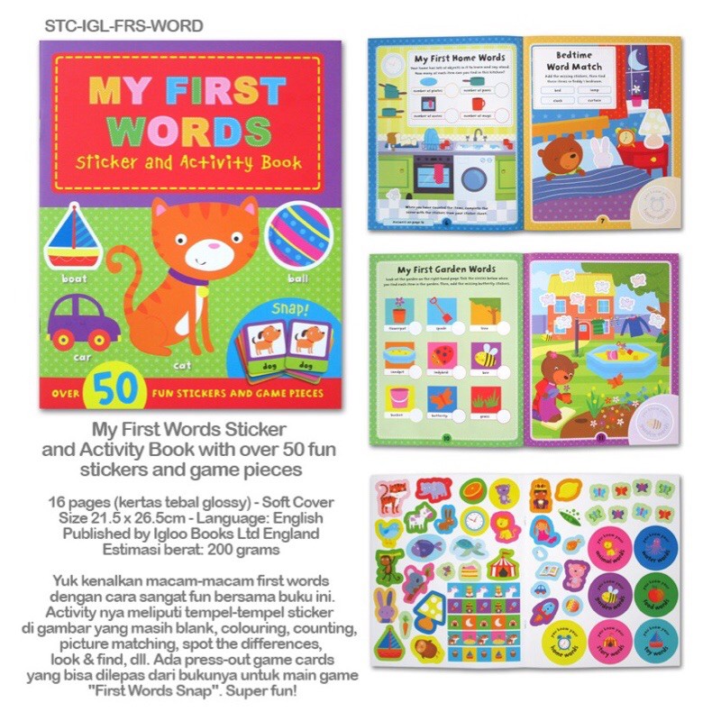 My First Words Sticker and Activity Book with over 50 fun stickers and game pieces