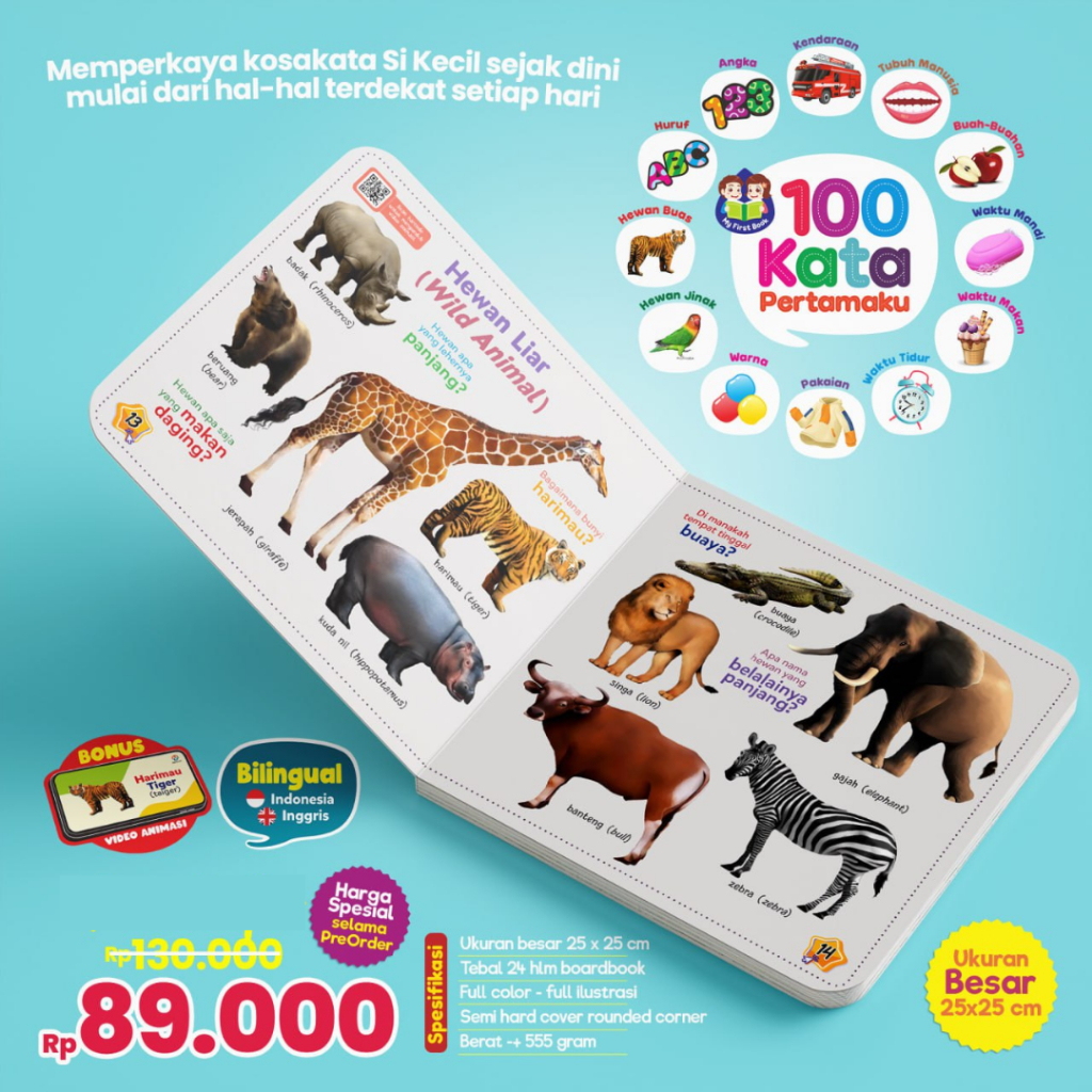 Buku 100 Kata Pertamaku My First Book Boardbook Edukasi Anak Bilingual Indonesia Inggris Bayi Usia 0 6 12 Bulan 1 2 3 Tahun