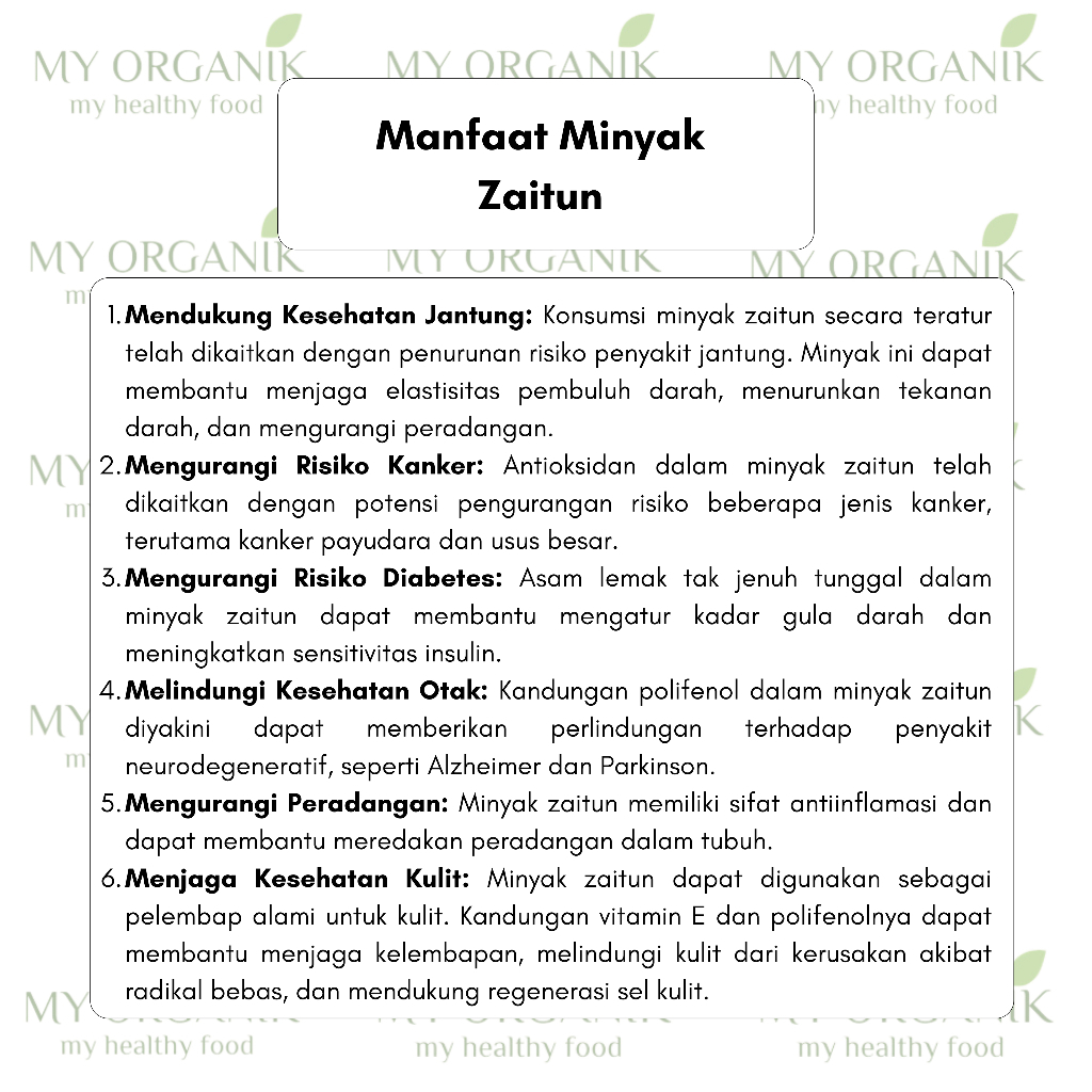 My Organik Virgin Olive oil 100% Minyak zaitun EXTRA VIRGIN OLIVE OIL 500ML UNTUK MASAK