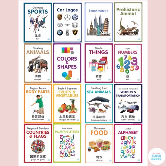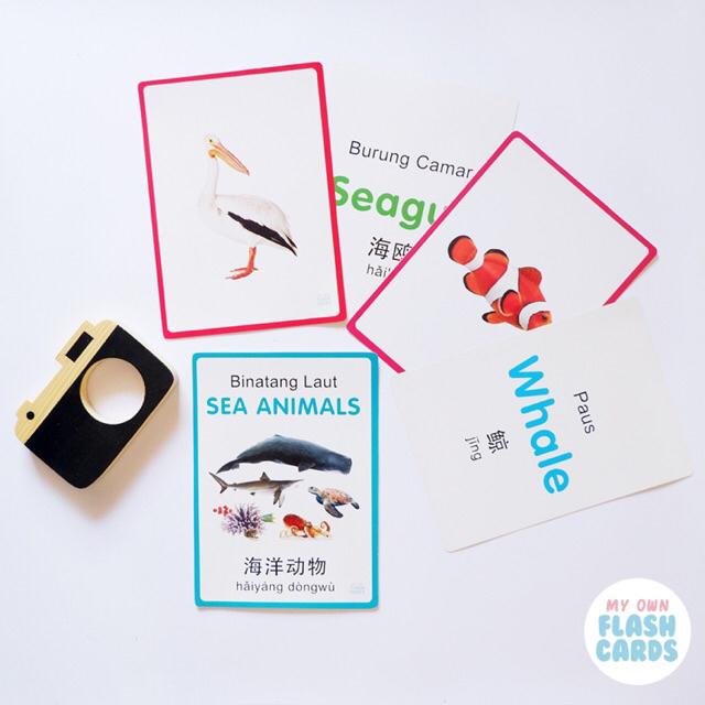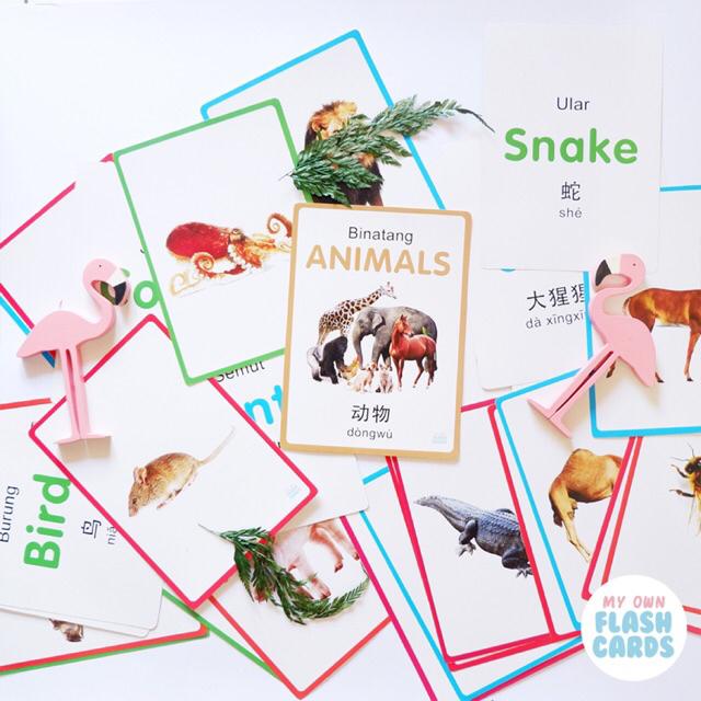 My Own Flashcards 3 bahasa / Flash Card Animal, Body Parts, Kartu Pintar Mainan Edukasi Flashcard