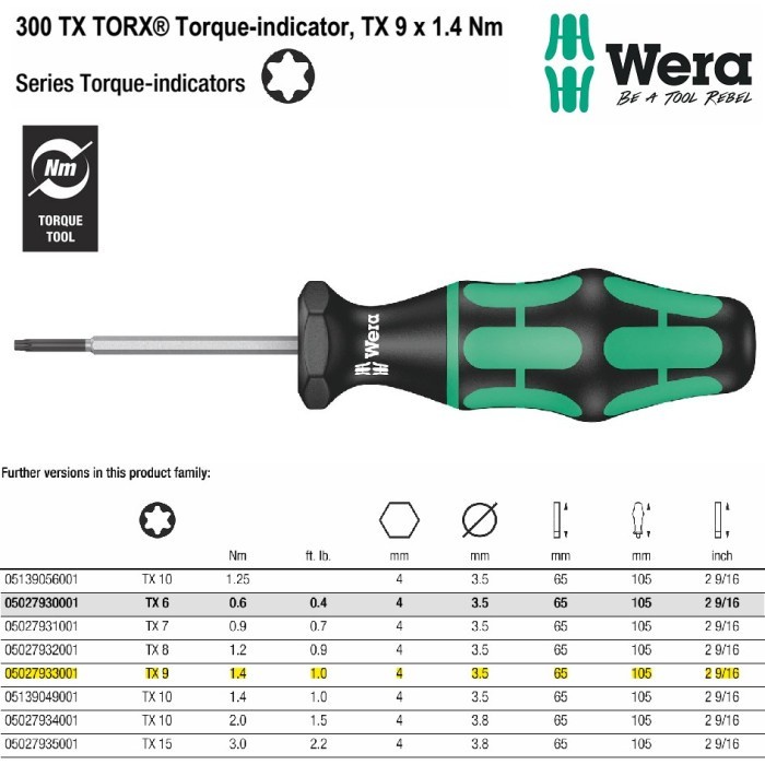 Myhomey Obeng Torsi Bintang TX 9 - 1.4 Nm Wera 05027933001 Torque-indicators