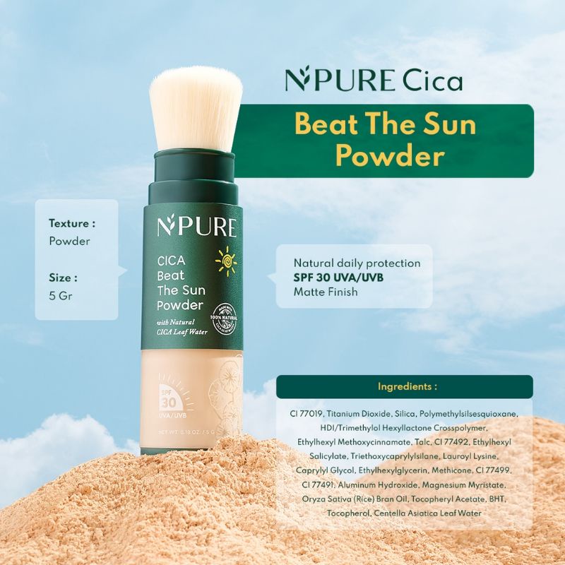 N'PURE Cica Beat The Sun Powder SPF 35 UVA/UVB | NPURE Bedak Translucent Sekaligus Sunscreen | Cocok untuk Reapply di Atas Make Up