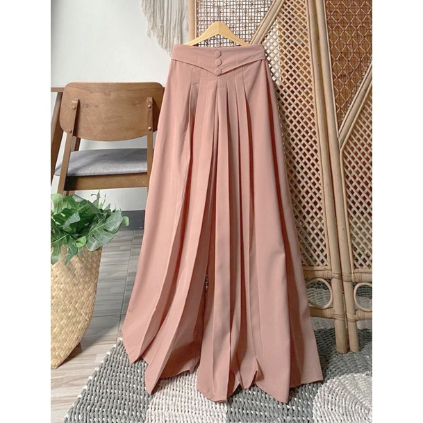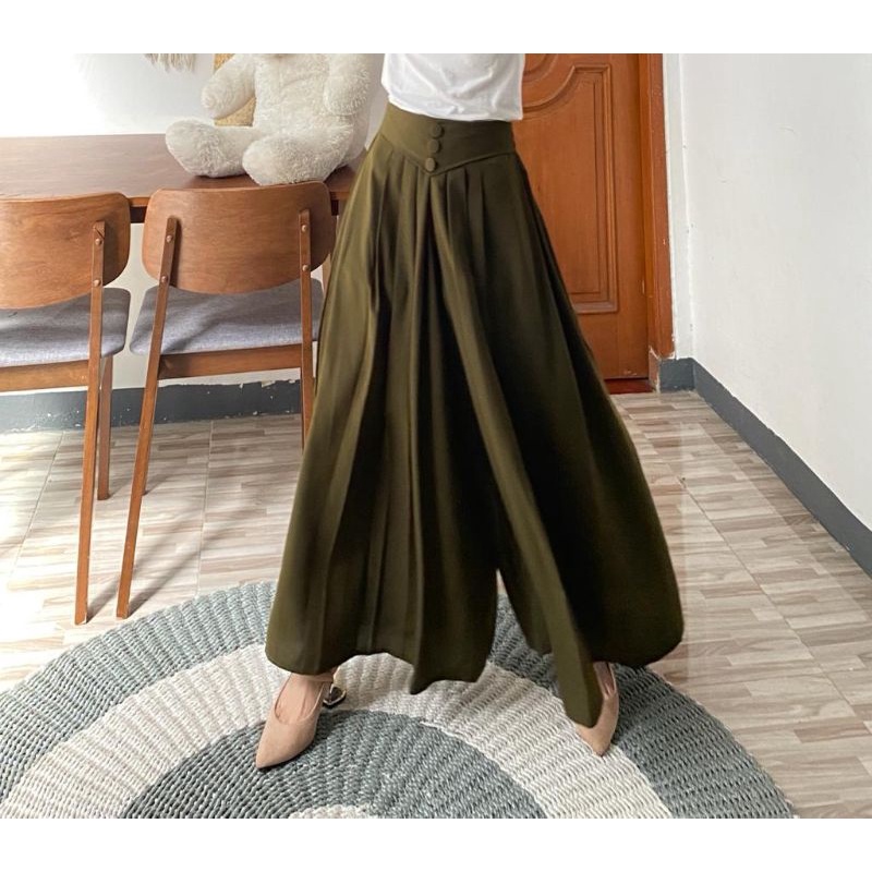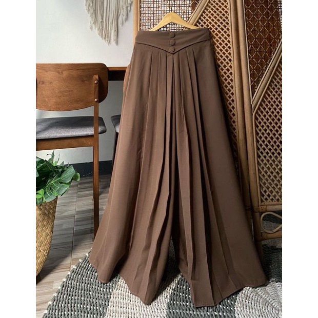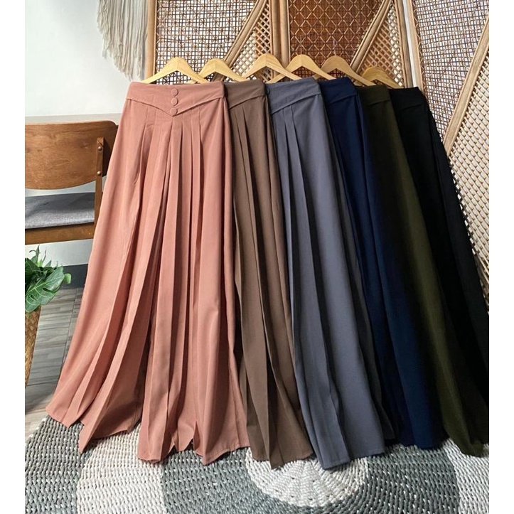 NAFISHA Kulot Wide Pant || Kulot Lipit || Kulot Kancing 3 Bahan Wolfis Premium/ Crinkle Premium || Panjang 93 cm || Kulot Mayung