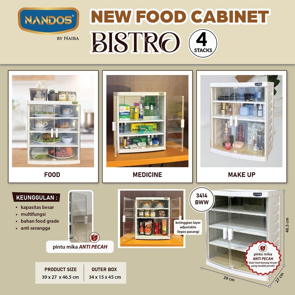 NAIBA Tempat Penyimpanan Makanan Tertutup Bahan Plastik PUTIH Transparant Bening FOOD CABINET BISTRO