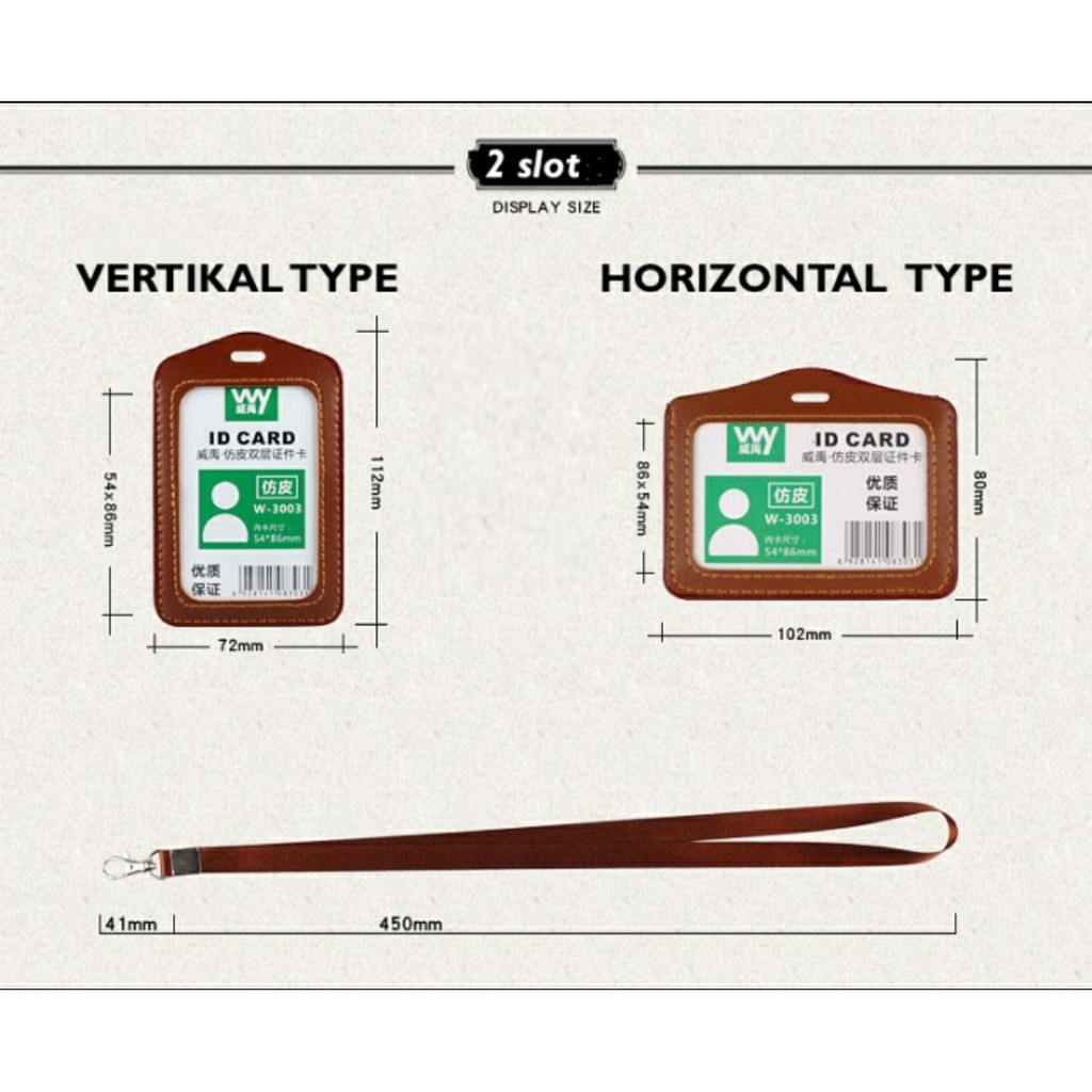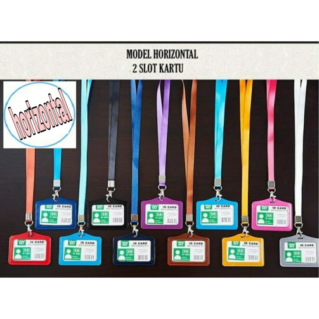 NAME TAG GANTUNGAN ID CARD KALUNG KARTU PENGENAL NAME TAG KULIT ID CARD 2 SLOT HORIZONTAL