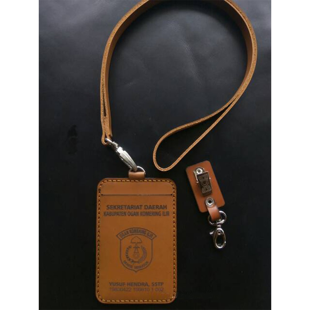 NAME TAG KULIT COSTOM NAMA DAN LOGO PERUSAHAAN
