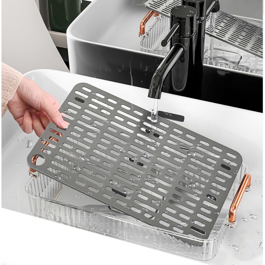 NAMPAN PLASTIK AESTHETIC TRANSPARAN BAKI SERBAGUNA DENGAN PENGERING