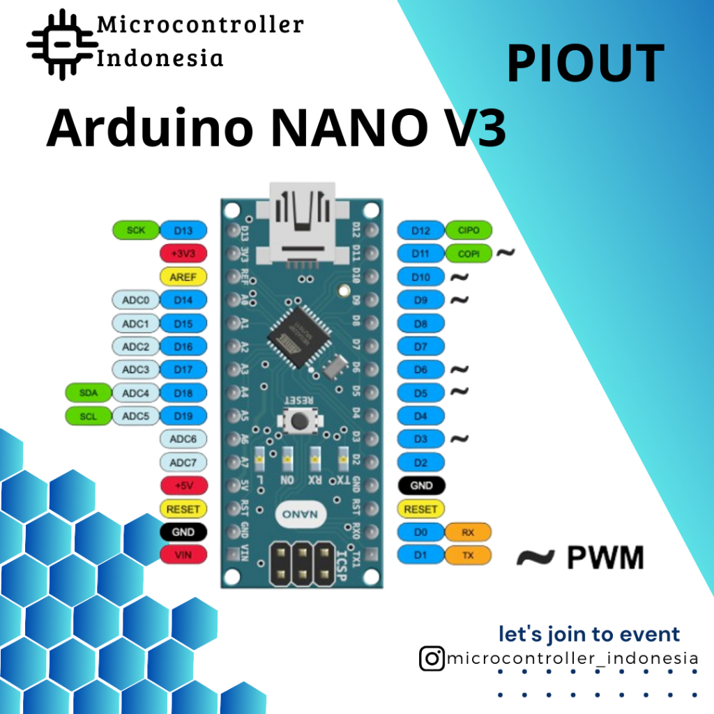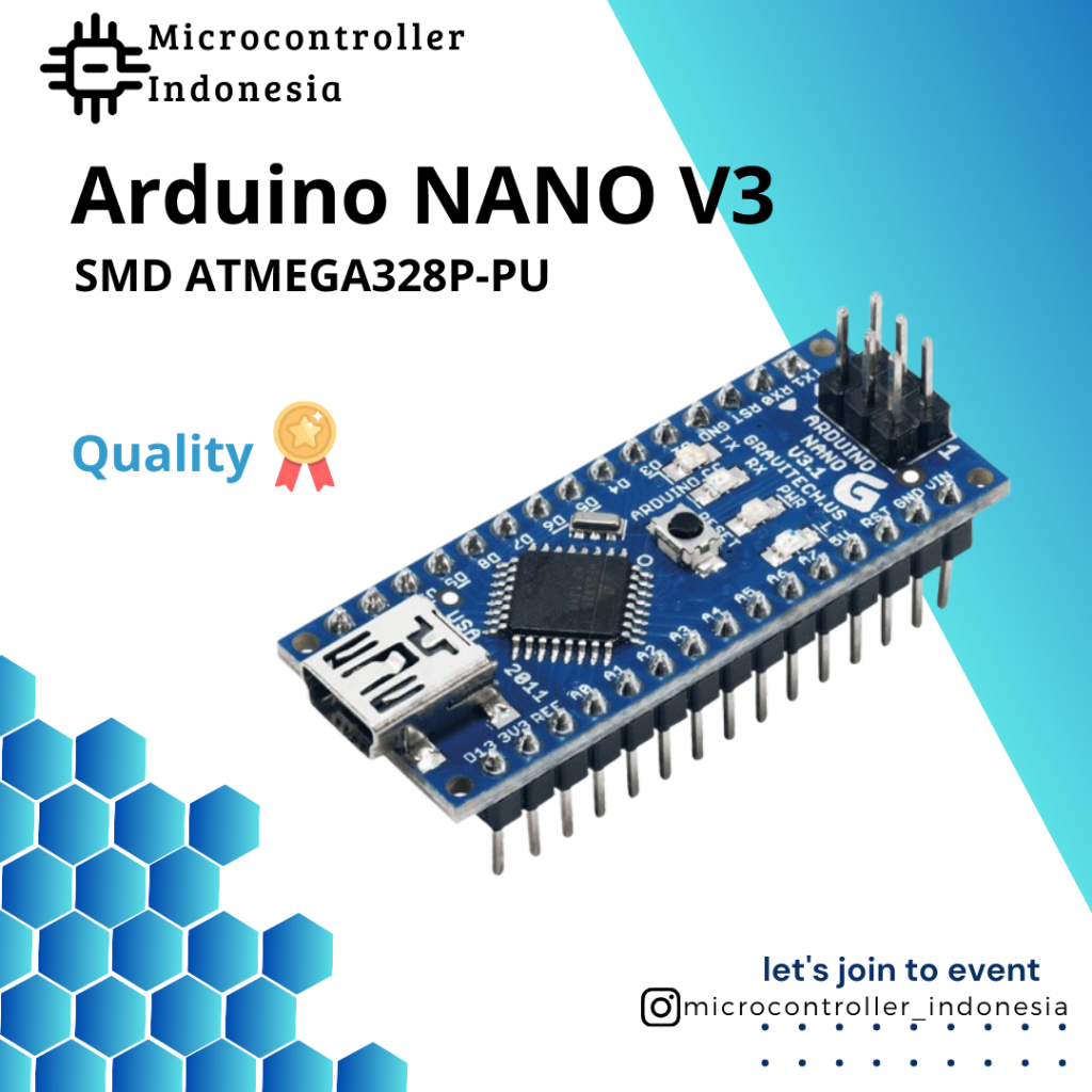 NANO V3 ATMEGA328P-PU 5V ARDUINO NANO ATMEGA328 TANPA KABEL DATA MINI USB