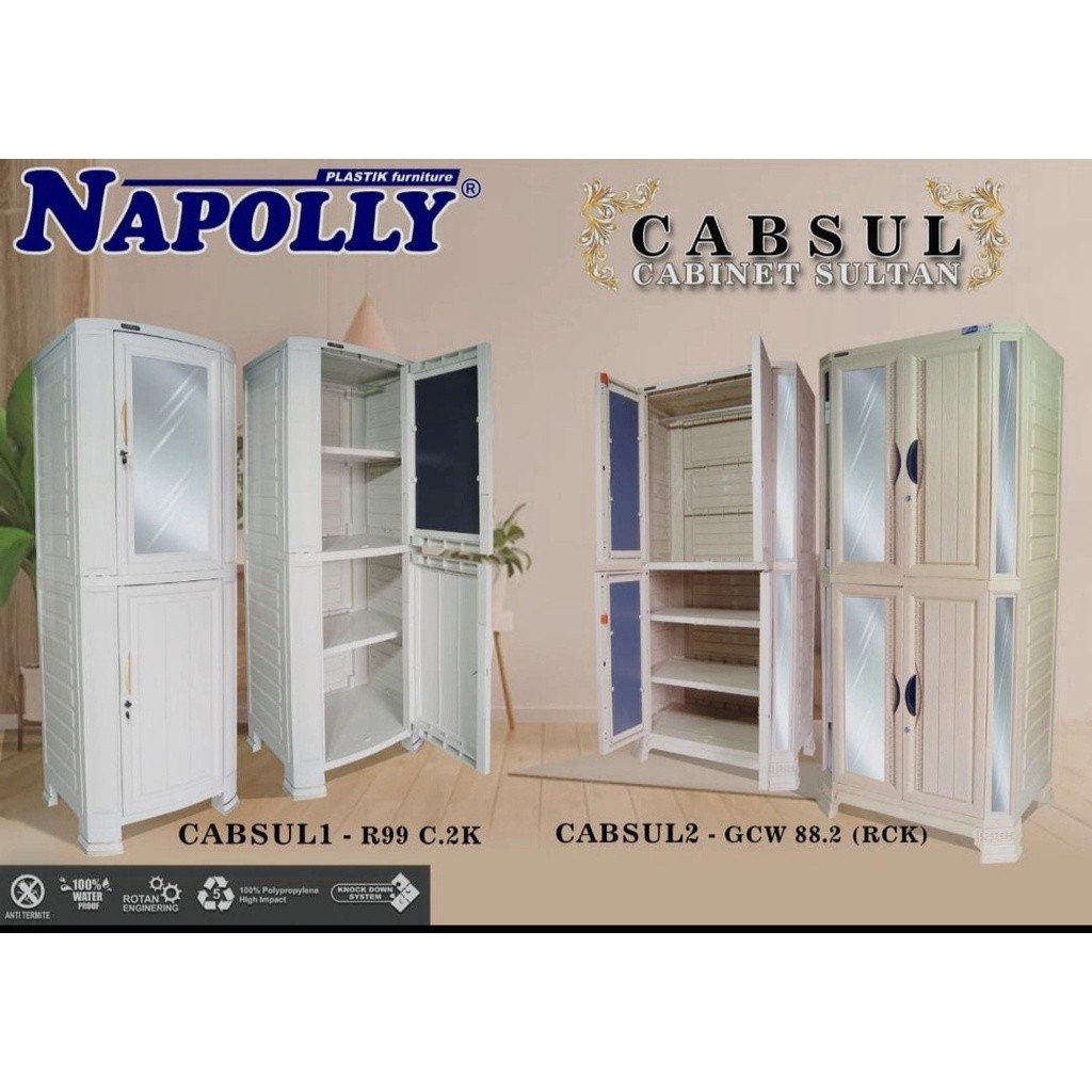 NAPOLLY - R99 2C.K Cabsul 1 | Napolly Lemari Pakaian 1 Pintu Rak dan Gantung + Cermin Kunci PUMA | Lemari Cabinet Serbaguna | Rak Pakaian 1 Pintu Plastik | Lemari Pakaian Modern
