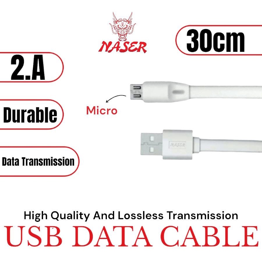 NASER KABEL DATA USB MICRO 30CM / Kabel Data Gepeng Charger Pendek Usb Micro 2A Non Packingan