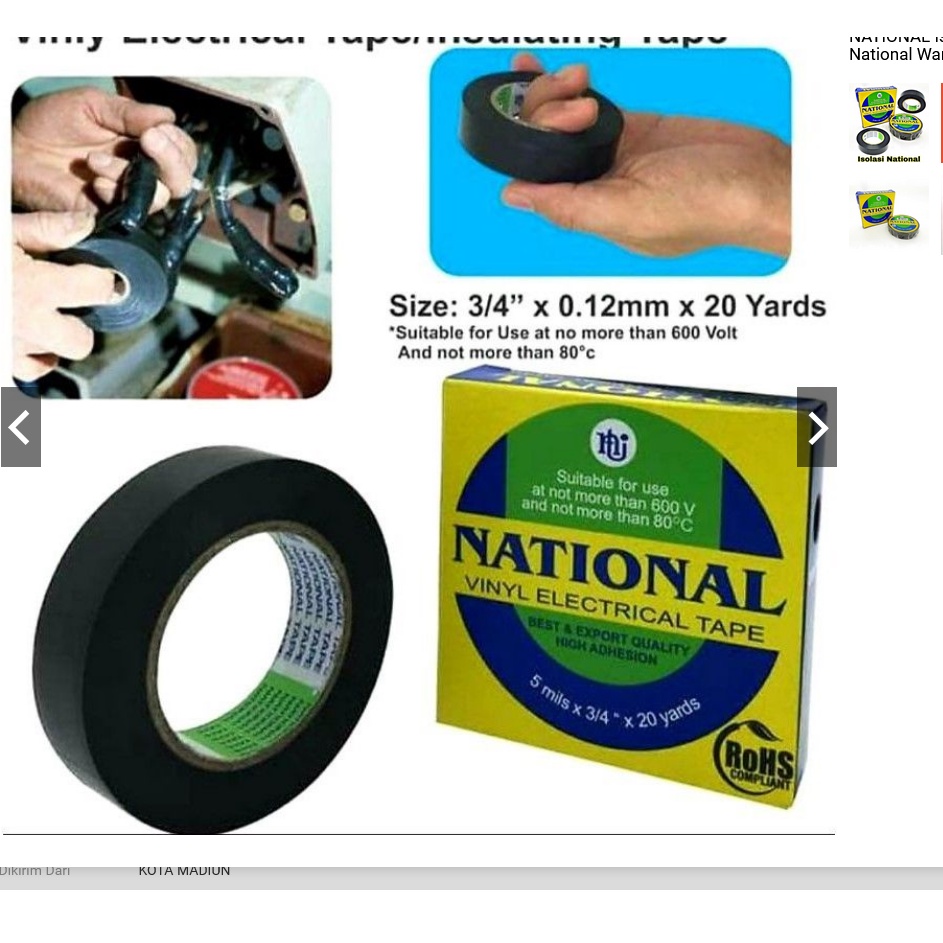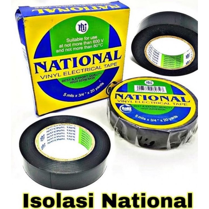 NATIONAL Isolasi Listrik Pvc National Warna Hitam 3/4 " Inci 20 Yard Selotip Solasi Vinyl