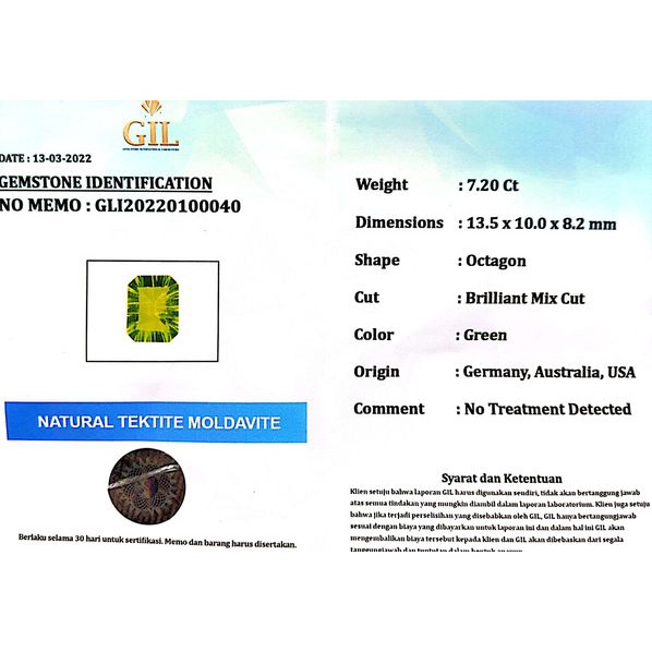 NATURAL BATU PERMATA METEOR ASLI HIJAU TEKTITE FULL LUSTER INCLUDE MEMO GIL GEMS LAB
