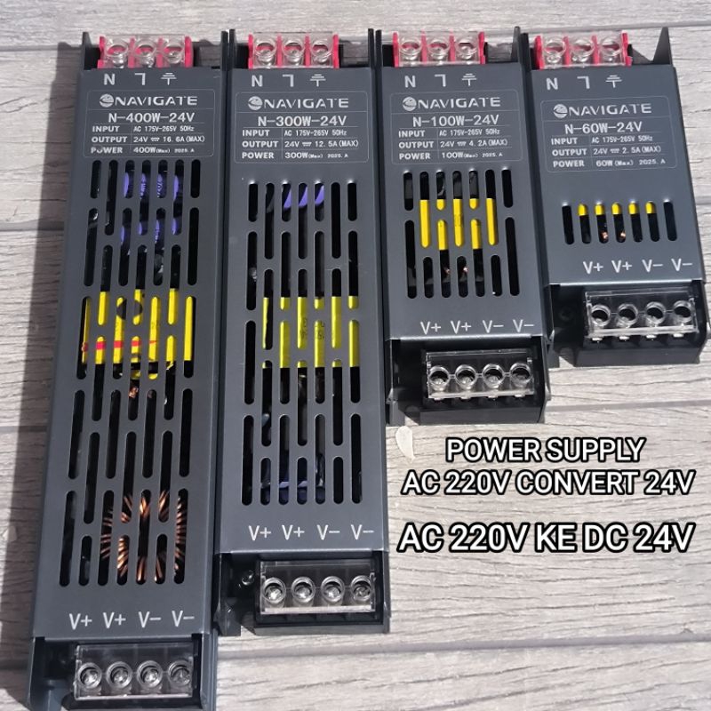 NAVIGATE POWER SUPPLY SWITCHING TRAFO DC 24V 400W 300W 200W 100W 60W 2.5A 4.2A 8.3A 10A 12.5A 15A 16.6A 20A 25A 30A 33.3 AMPERE 24 VOLT TRAVO DRIVER LED STRIP CCTV KUALITAS PREMIUM