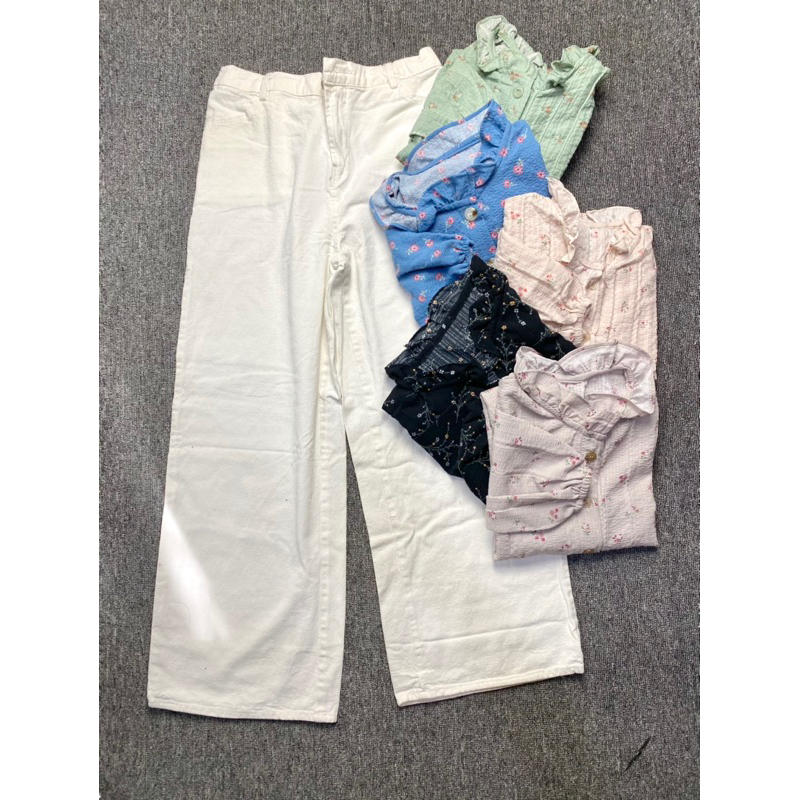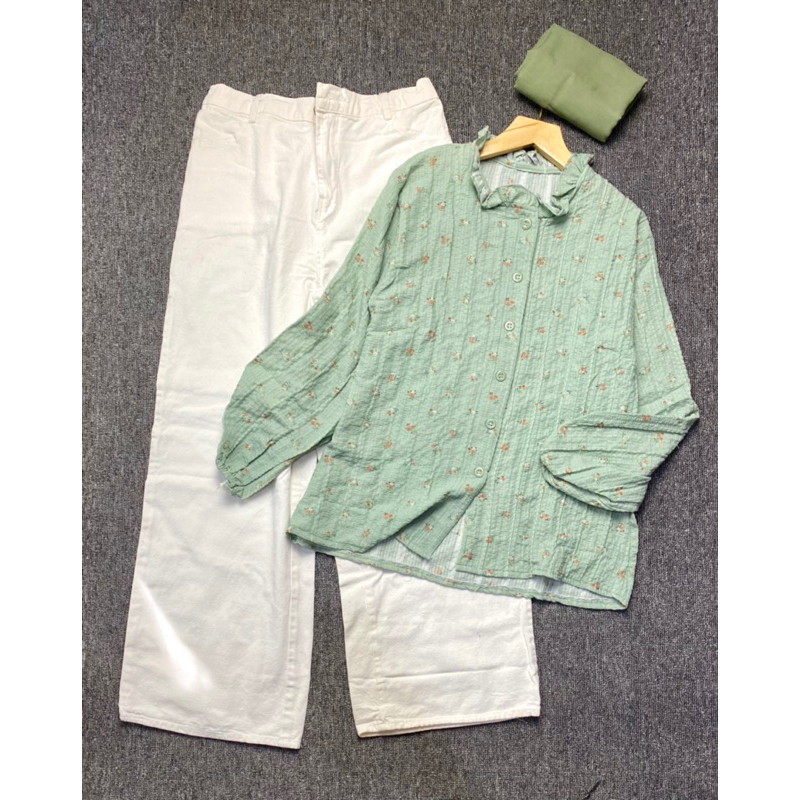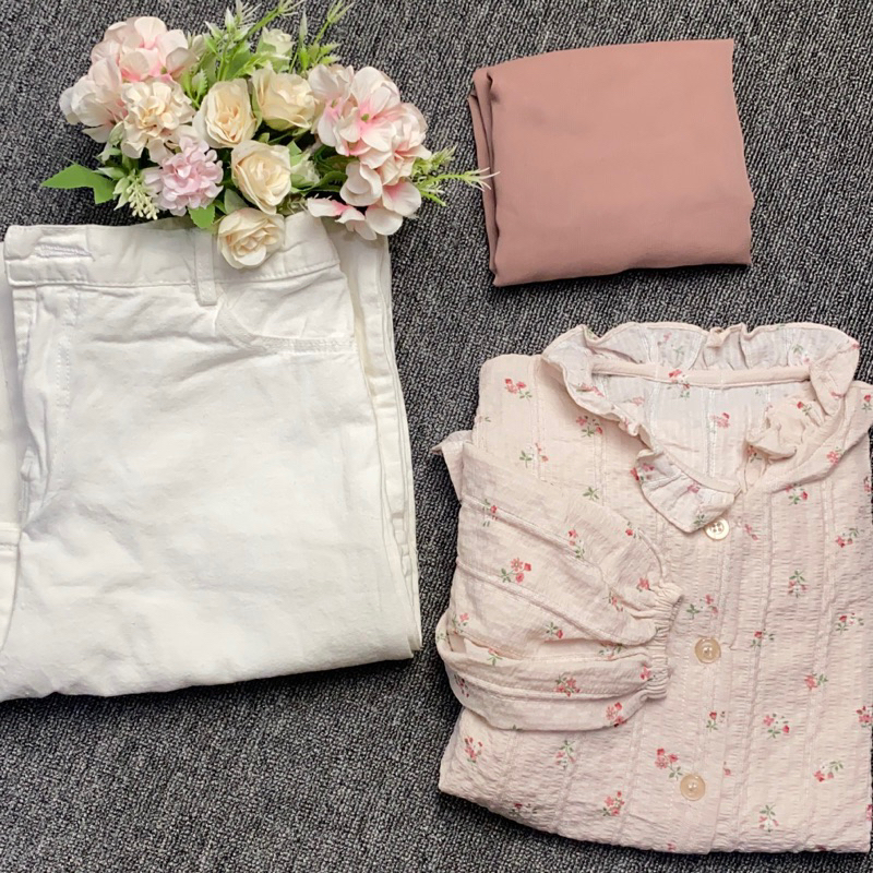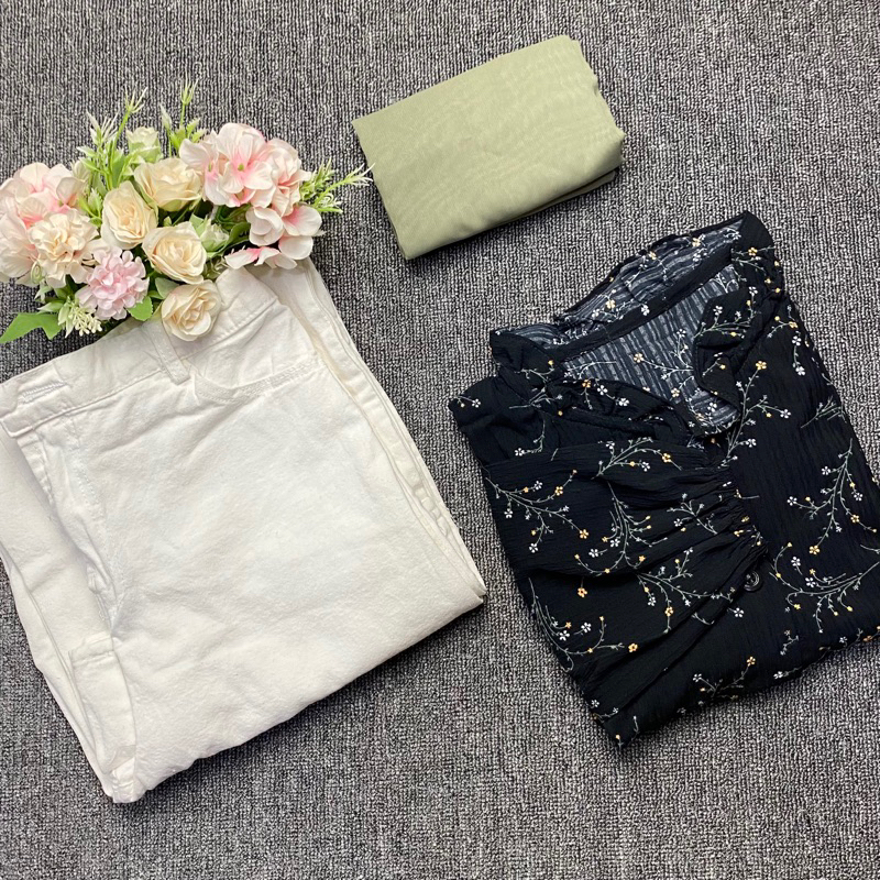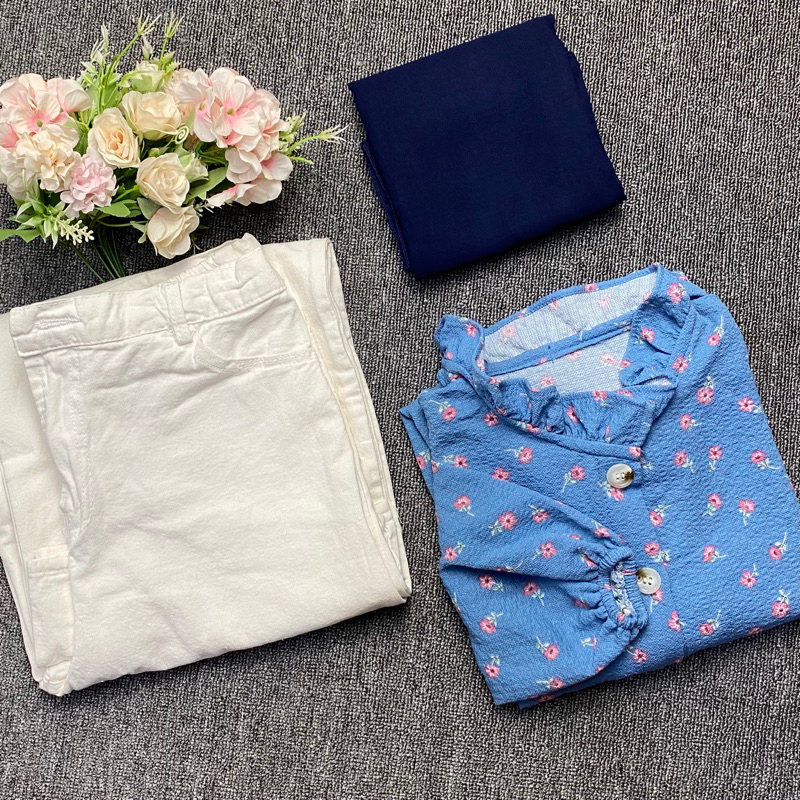NAYLA ONE SET ( blouse crinke flower+bella square+kulot jeans wash)
