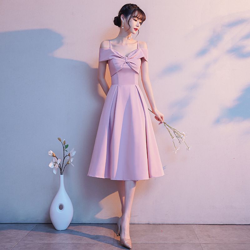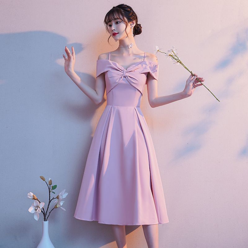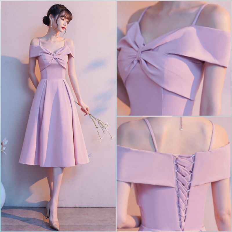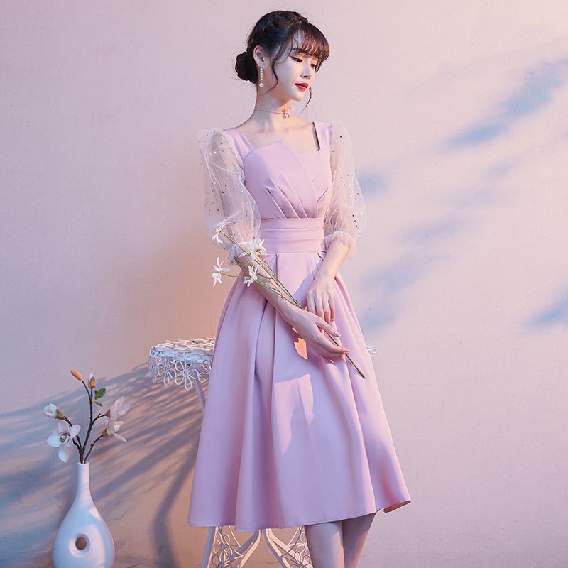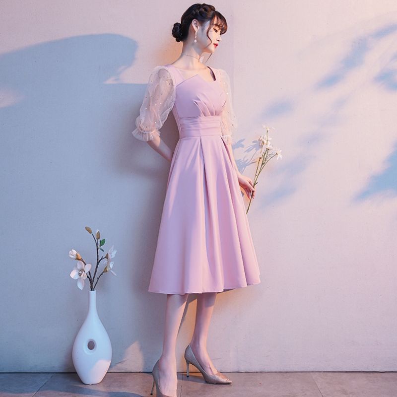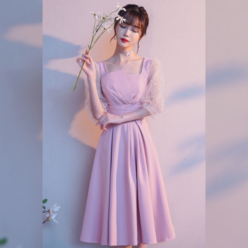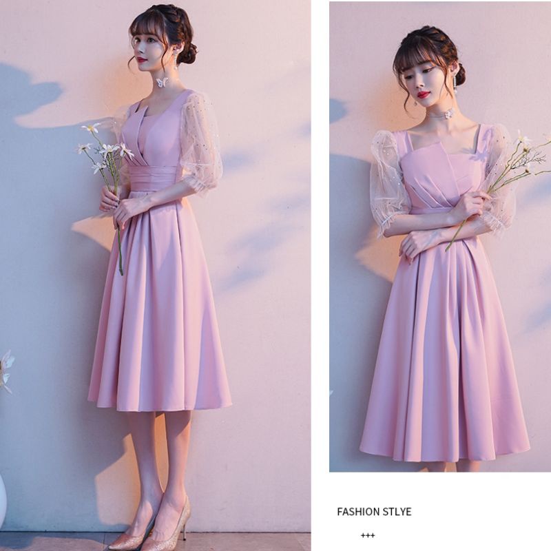 ND-186 S-2XL Custom size Gaun pesta impor gaun midi berlengan gaun pink dress pesta dress pink