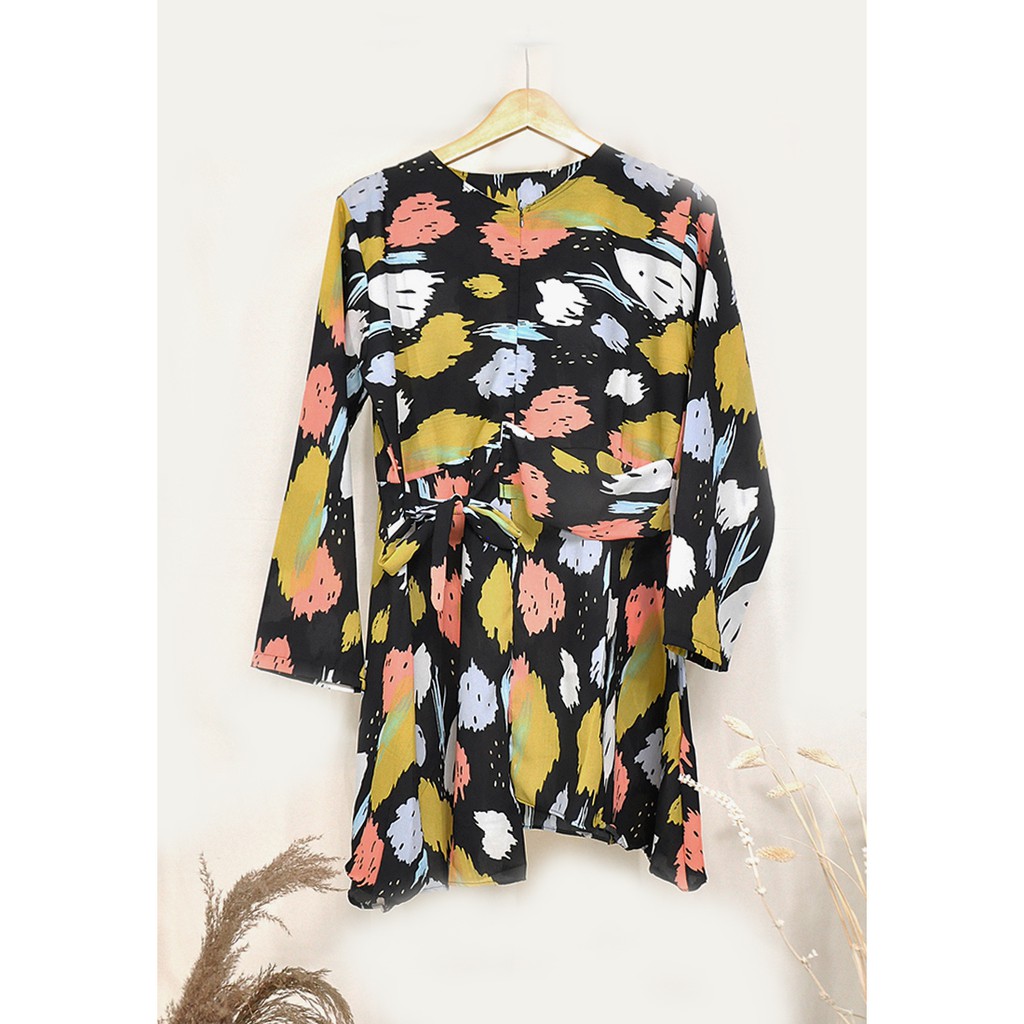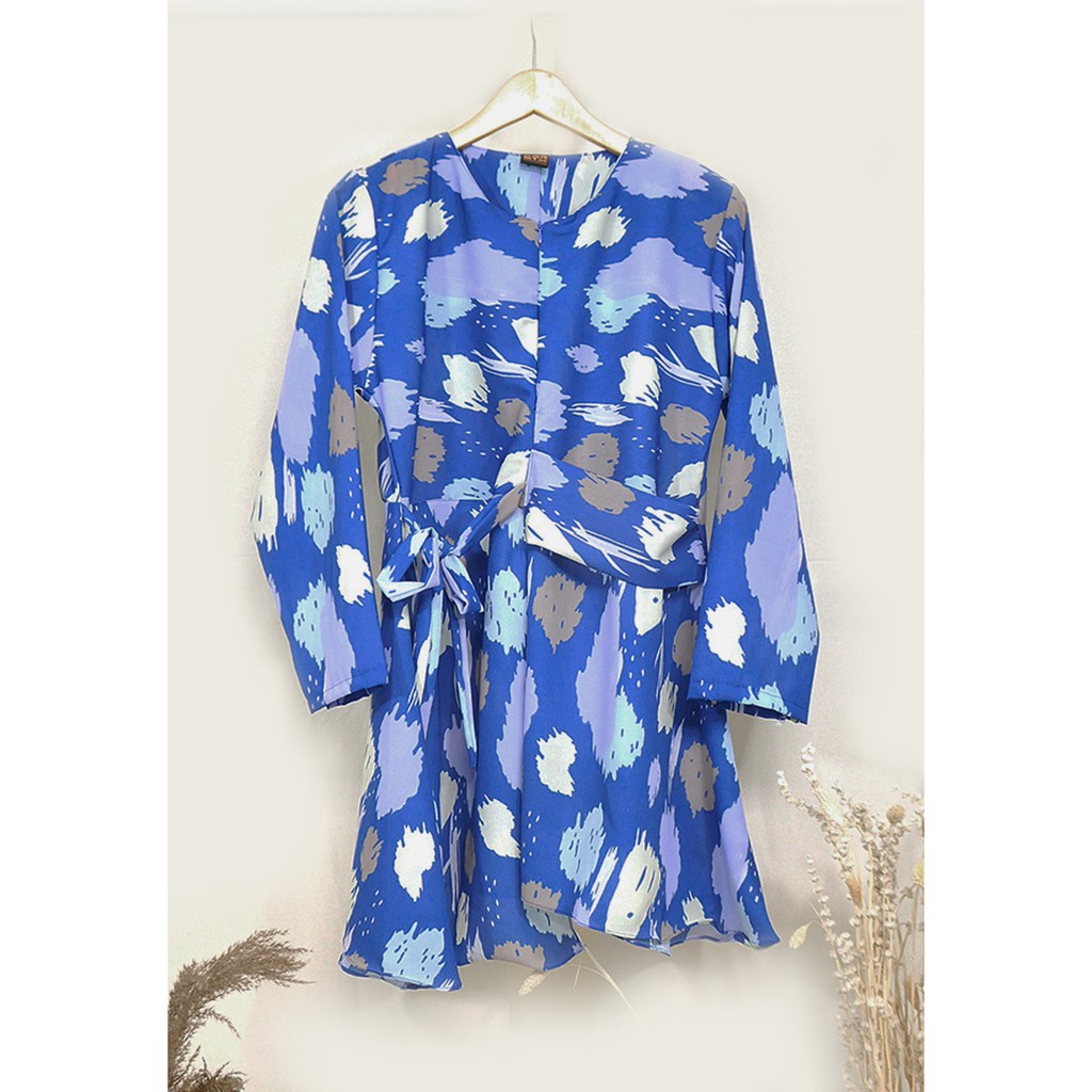 NEFF Busana atasan wanita | Baju tunik wanita | Baju blouse wanita | Maxmara biru dan hitam motif