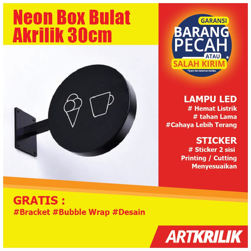 NEON BOX AKRILIK BULAT DUA SISI MURAH / NEON BOX BULAT NAME TAG TOKO / NEON BOX AKRILIK / NEON BOX NAMA TOKO / NEON BOX AKRILIK / NEON BOX 2 SISi / NEON BOX TIMBUL / HURUF TIMBUL