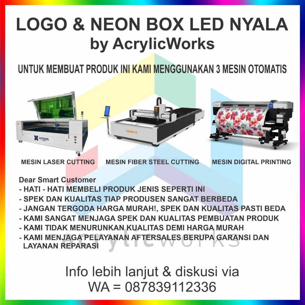NEON BOX BESI BULAT 1 & 2 SISI UKURAN 80 CM - 100 CM NYALA CUSTOM INCLUDE BRACKET & PACKING