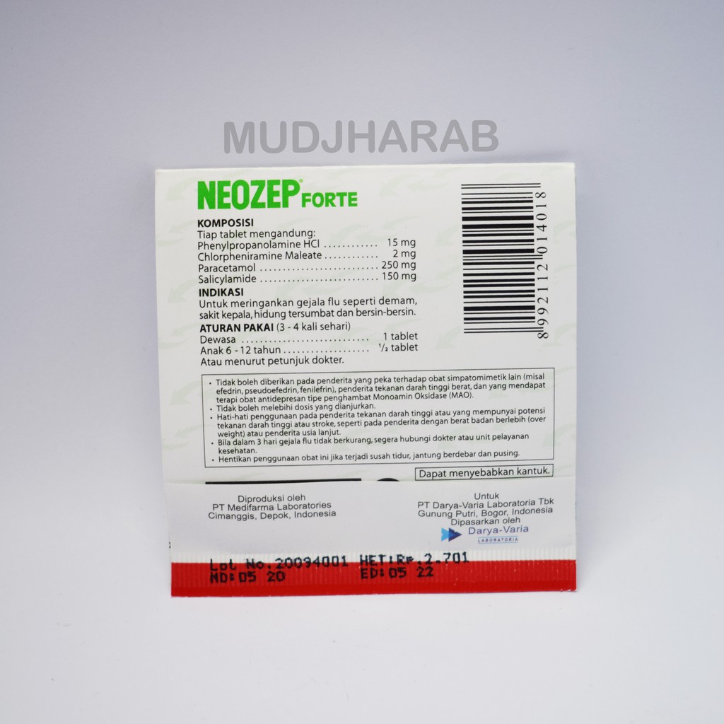 NEOZEP FORTE TABLET STRIP 4'S - OBAT FLU BERSIN