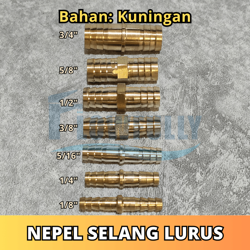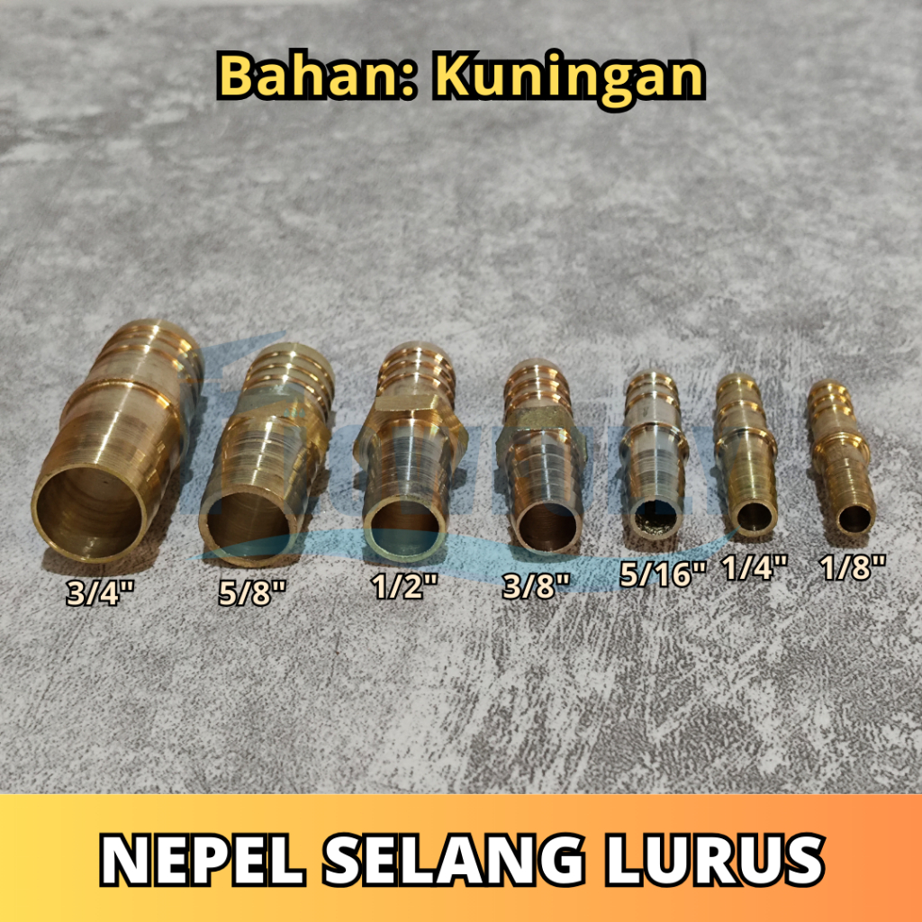 NEPEL NEPLE SELANG KUNINGAN SAMBUNGAN LURUS HOSE NIPPLE 1/4 5/16 3/8 1/2 5/8 3/4