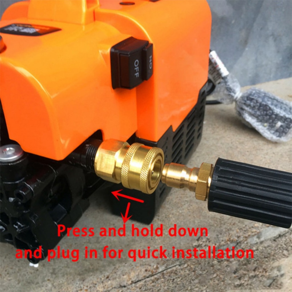 NEPEL NIPLE SAMBUNGAN QUICK RELEASE ADAPTOR ADAPTER KONEKTOR CONNECTOR KOPLER COUPLER NEPEL QUICK RELEASE THREAD MALE FEMALE COWO CEWE DRAT M 22 M22 22MM 5/8 DARI SELANG KE GUN PISTOL MESIN HIGH PRESSURE WASHER JET CLEANER ORION SUPERJET 100S KUNINGAN