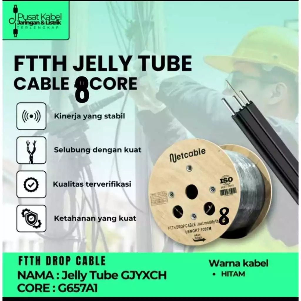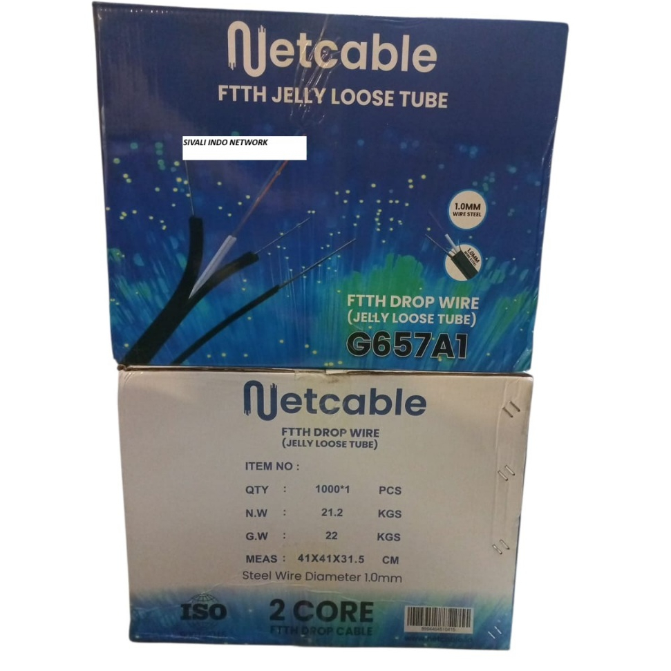 NETCABLE JELLY TUBE KABEL FIBER OPTIK 3 SLING DROPCORE Core 2 l Core 4 l Core l 6 Core l 12 Core PANJANG 1000M/ 1KM NETCABLE