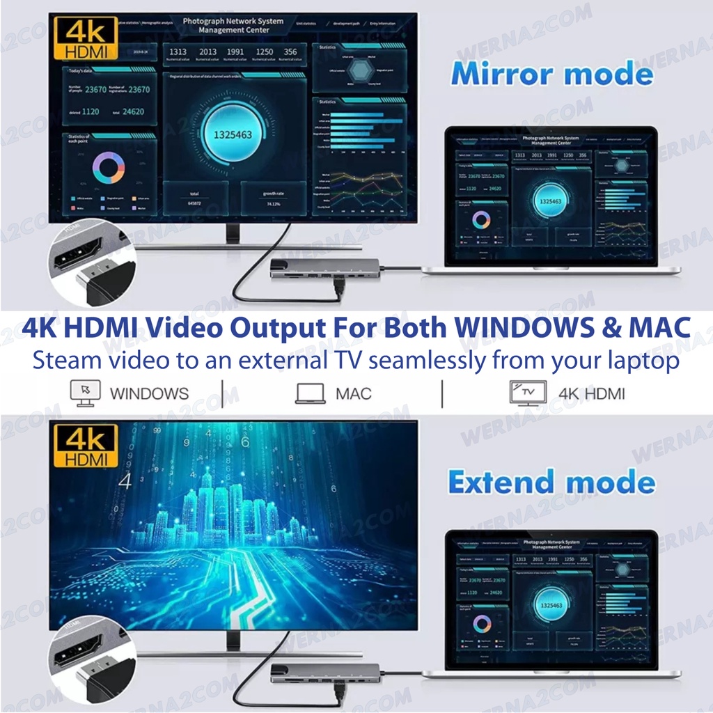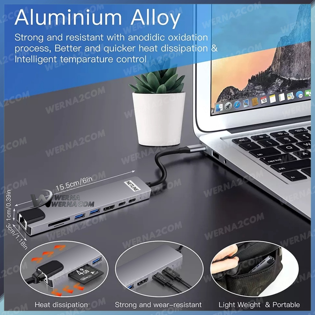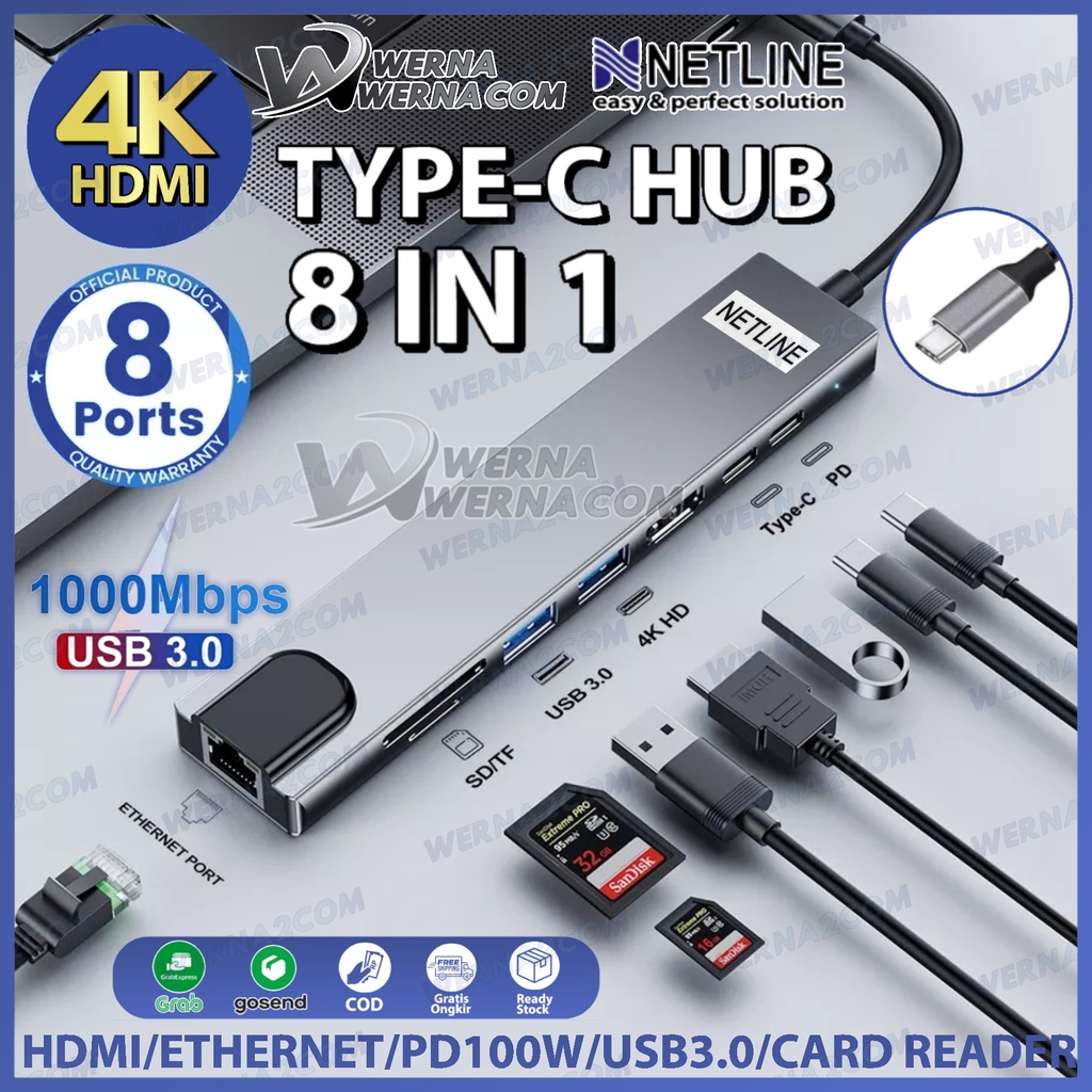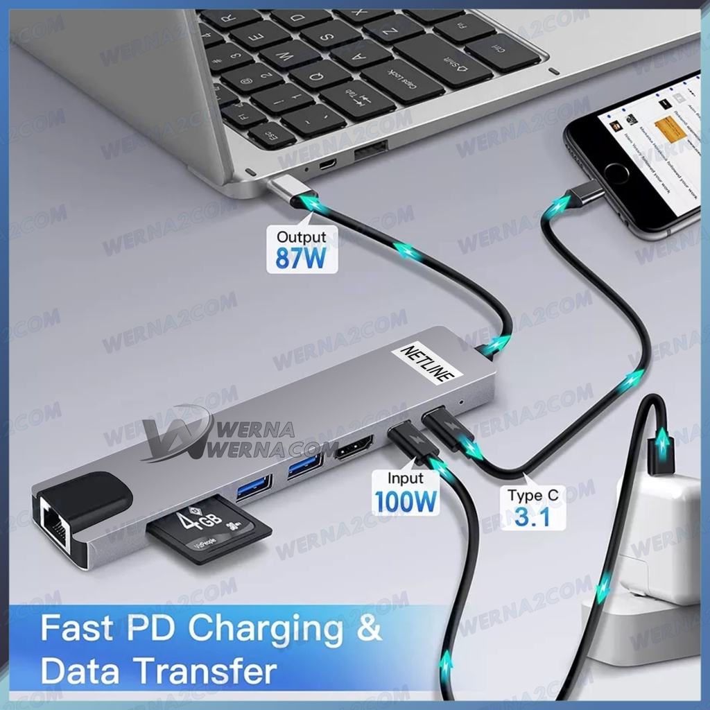 NETLINE HUB Type C 8in1 HDMI, Card reader, Eternet LAN, USB 3.0, PD100W