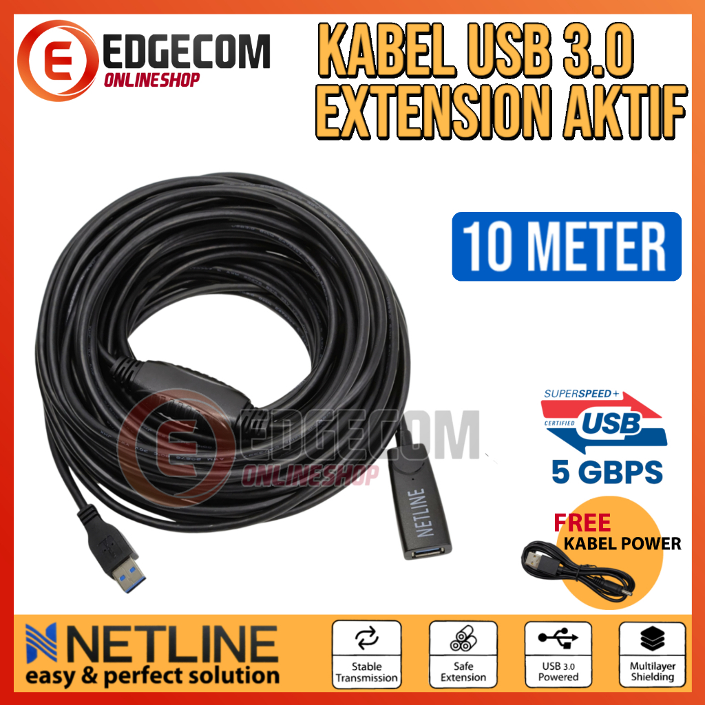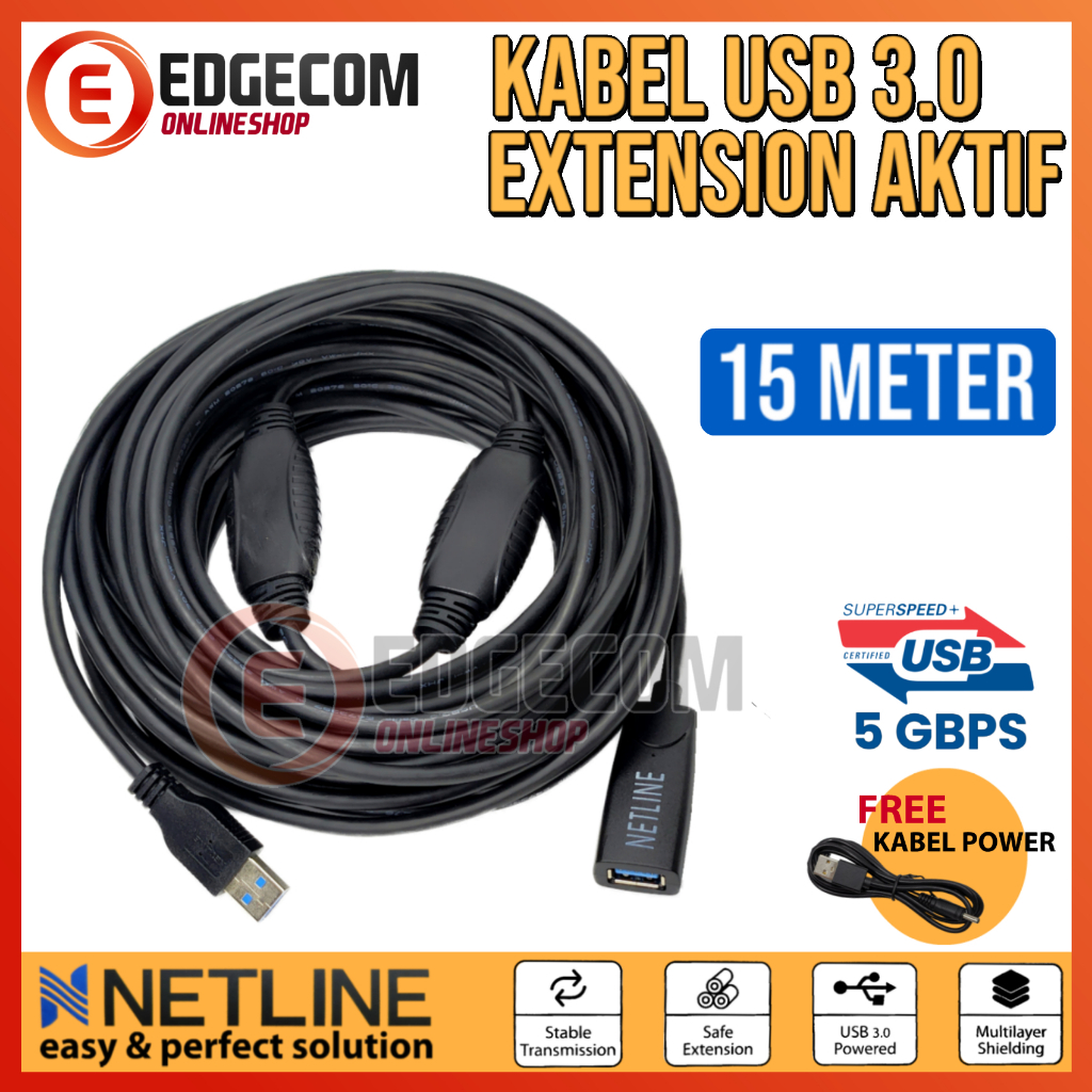 NETLINE Kabel USB 3.0 Extension Aktif / Extender Active 15 Meter With USB Power