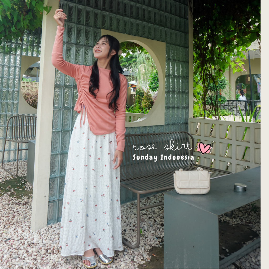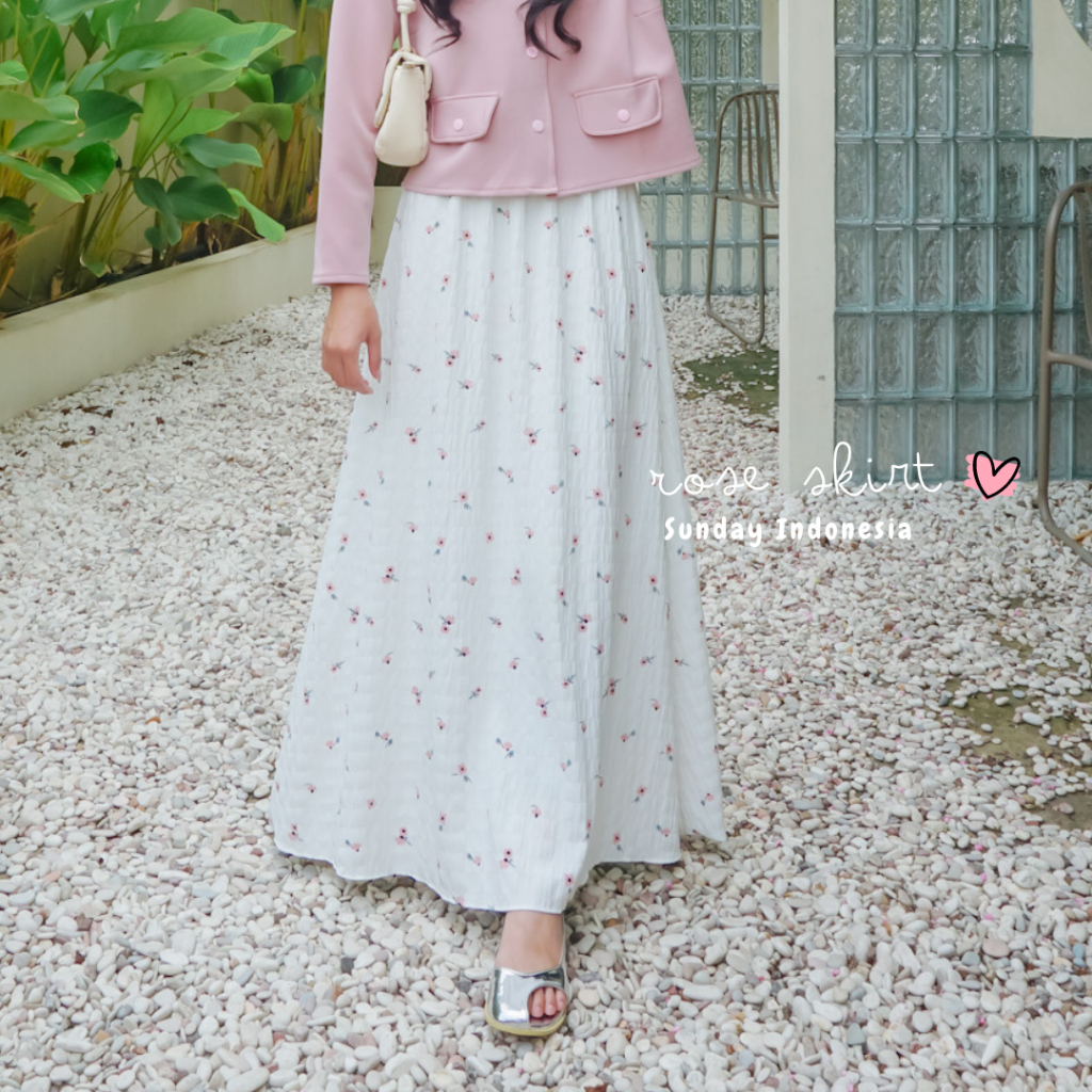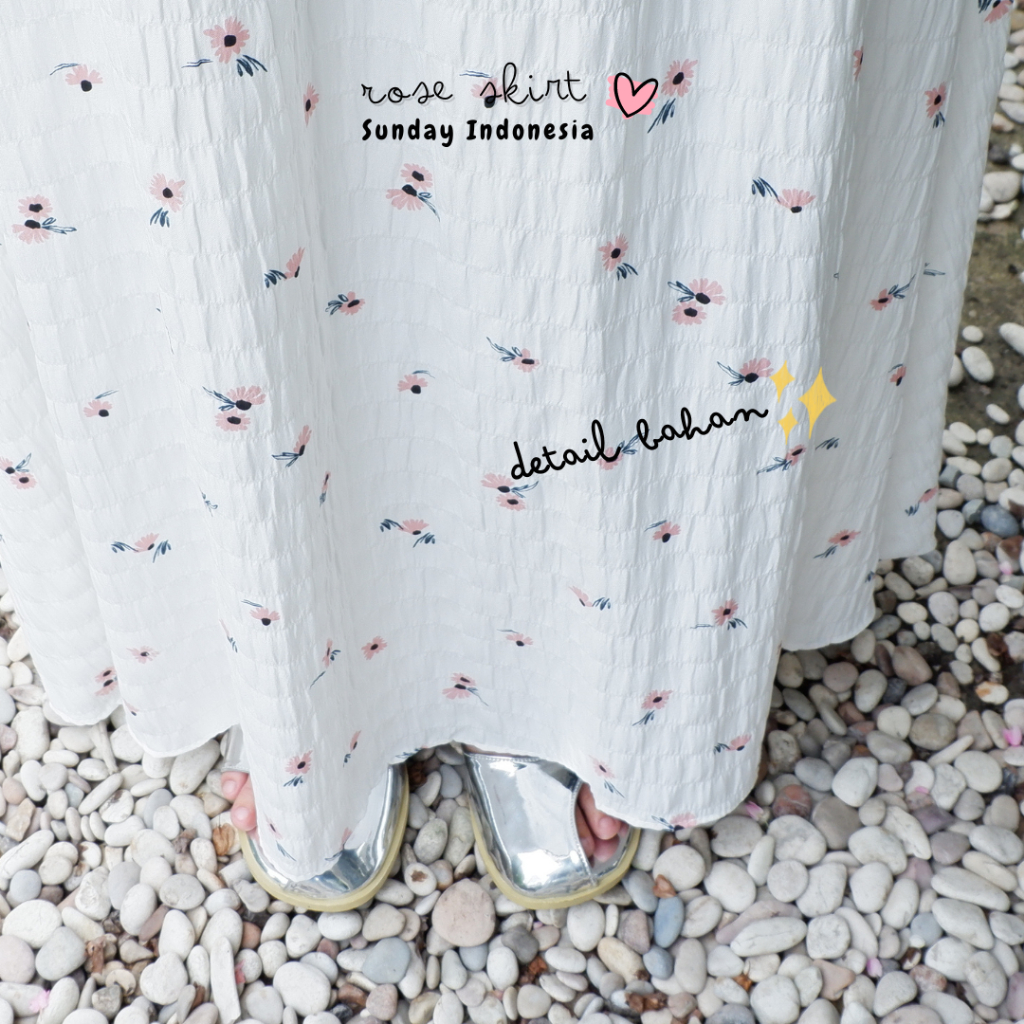 NEW!! ROSE - Rok Flowie Panjang - Rok Korea Texture - Rok A Line Korean Style - Korean Skirt - Rok Putih Premium Sunday Indonesia
