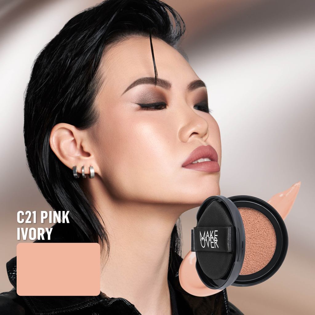 NEW! MAKE OVER Powerstay Sync Matte Cushion - Smart AI Matte Cushion High Coverage Zero Oxidation Oil Control Foundation Compact Makeup Concealer Skin Tint long lasting time less stain with euphoria